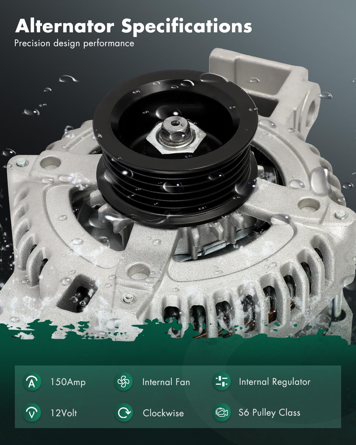 ?Alternator Fitment?- Automotive new alternator replacement for Cadillac for CTS 3.6L 2008,for Cadillac for CTS 3.6L 2009 | ?Alternators Specifications?- Voltage: 12V; Amperage: 150A; Rotation: CW(Clockwise); Regulator: IR ; Fan: IF; Grooves: S6 Pulley Class; Condition: New, high output alternator is compact and lightweight, fully compatible with the electronic system of your vehicle | ?Car Alternator Reference Number?- Direct OEM replacement for your malfunctioning part, OE number : 11369 104210-5390 10396863 290-5231 AND0487 400-52467R 400-52468R 12846 213-9756 90-29-5713 11369A 210-0641 11369N 36-11369 A-80197 | ?Easy Installation?- (1) Be sure to disconnect the negative electrode of the battery; (2) When replacing, pay attention to the appropriate tension of the transmission belt: if too loose, it may slip and cause insufficient power generation; If too tight, it can easily damage the belt and alternator bearings; (3) When replacing, pay attention to tightening all screws. If you have any problems during use, then get in touch with us, we will supply you with professional technical support | ?Note?SCITOO Auto supply alternator for most cars, SUVs, trucks and trailers. Please select your vehicle (year/make/model/trim) in the top left corner of the page to confirm compatibility or refer to the vehicle information in the description