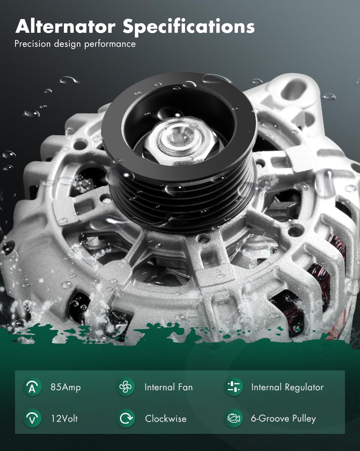 ?Alternator Fitment?- Automotive new alternator replacement for Chevrolet for Aveo 2004 2005,for Chevrolet for Aveo 2006 2007,for Chevrolet for Aveo 2008,for Chevrolet for Aveo5 2006,for Chevrolet for Aveo5 2007,for Chevrolet for Aveo5 2008,for Pontiac for Wave 2005,for Pontiac for Wave 2006,for Pontiac for Wave 2007,for Pontiac for Wave 2008,for Suzuki for Swift+ 2004,for Suzuki for Swift+ 2005,for Suzuki for Swift+ 2006,for Suzuki for Swift+ 2007,for Suzuki for Swift+ 2008 | ?High-Performance Specifications? - Engineered with Voltage: 12V; Amperage: 85Amp; Rotation: CW (Clockwise); Regulator: IR (Internal Regulator) ; Fan: IF (Internal Fan); Grooves: 6-Groove Pulley; Condition: New, high output alternator is compact and lightweight, fully compatible with the electronic system of your vehicle, this automotive replacement alternator delivers reliable power for your car, it