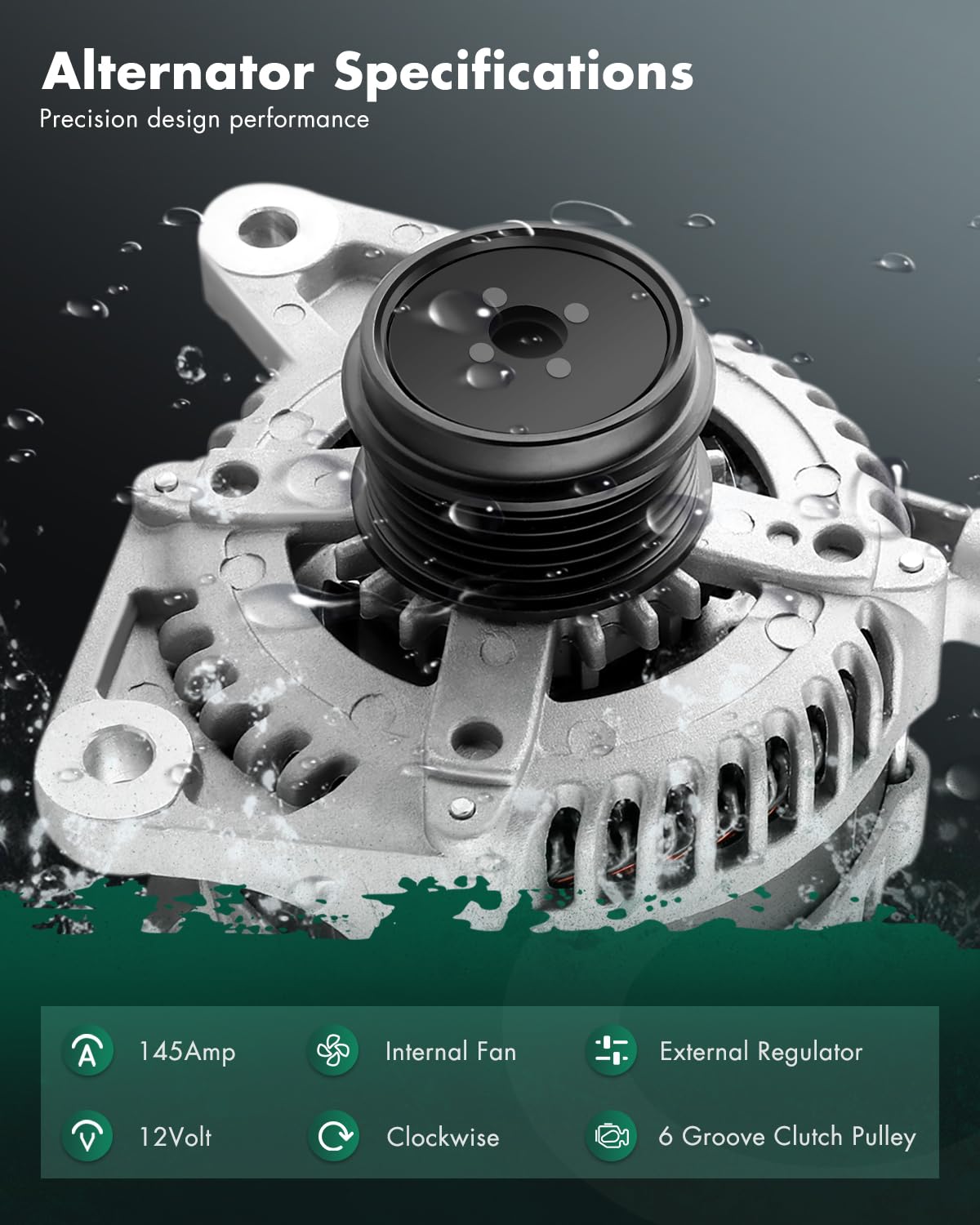 ?Alternator Fitment?- Automotive new alternator replacement for Chevrolet for Corvette 5.7L 2003,for Chevrolet for Corvette 5.7L 2004,for Chrysler for Pacifica 3.5L 2004,for Chrysler for Pacifica 3.5L 2005,for Chrysler for Pacifica 3.5L 2006 | ?High-Performance Specifications? - Engineered with Voltage: 12V; Amperage: 145Amp; Rotation: CW (Clockwise); Regulator: ER (External Regulator) ; Fan: IF (Internal Fan); Grooves: 6 Groove Clutch Pulley; Condition: New, high output alternator is compact and lightweight, fully compatible with the electronic system of your vehicle, this automotive replacement alternator delivers reliable power for your car, it