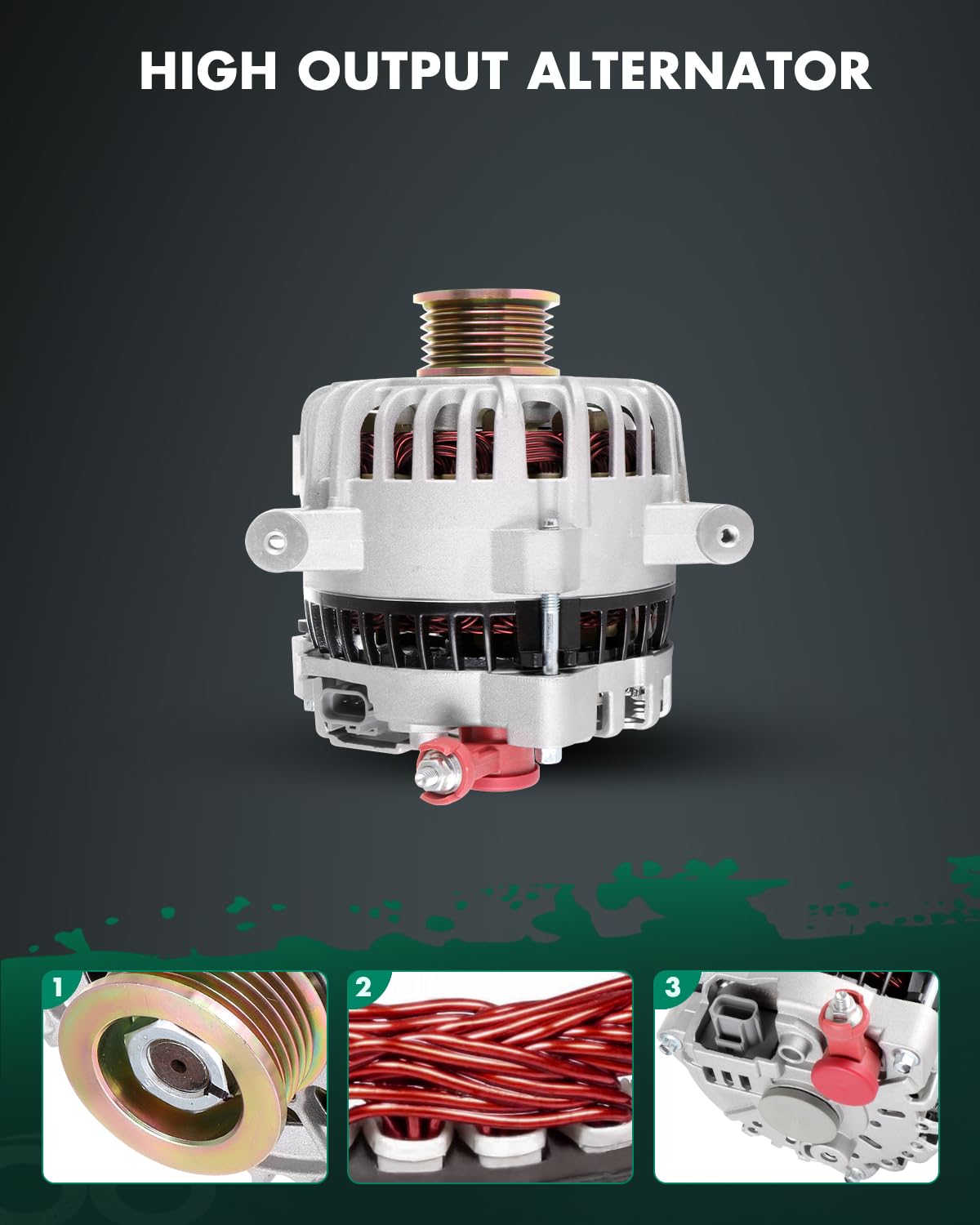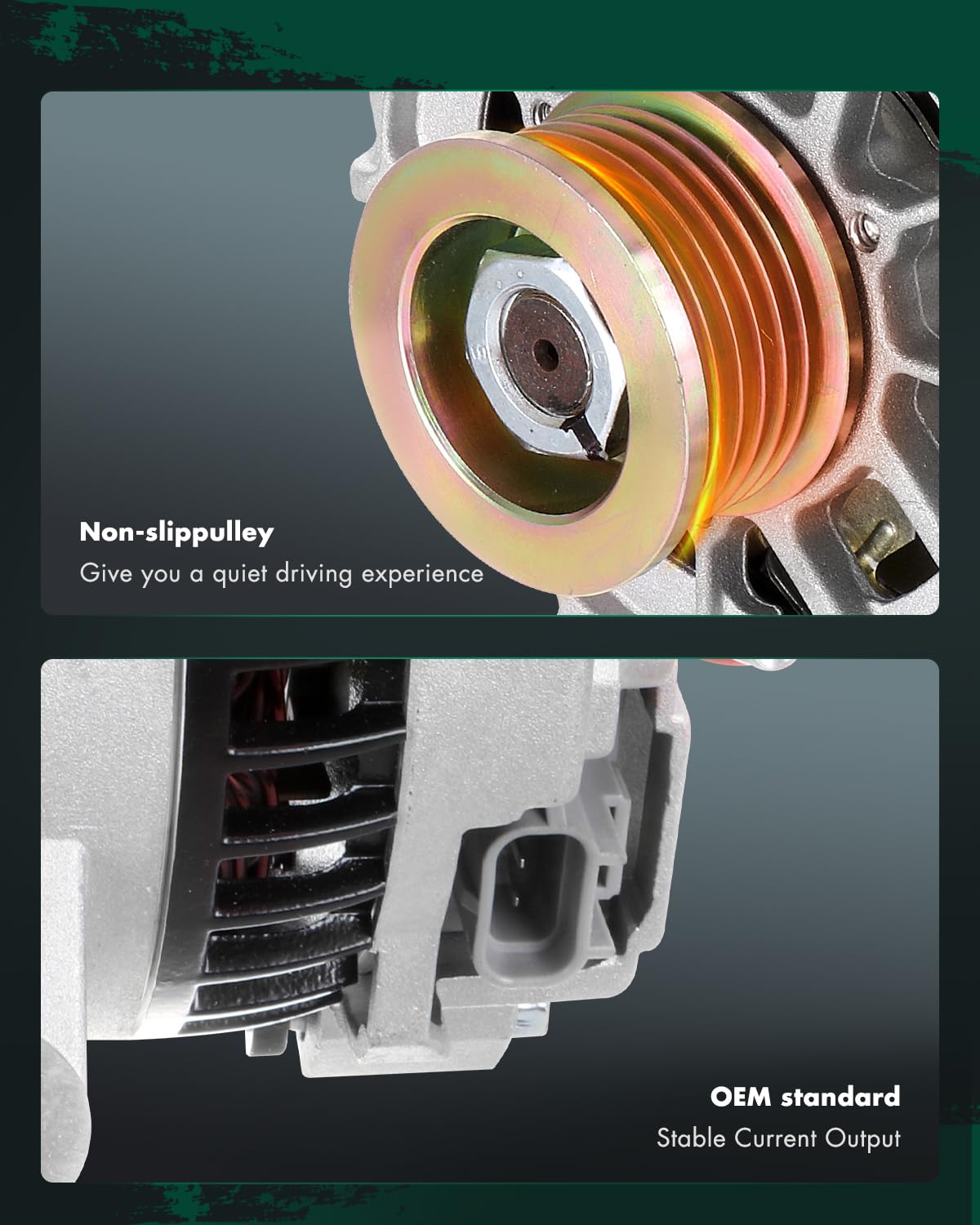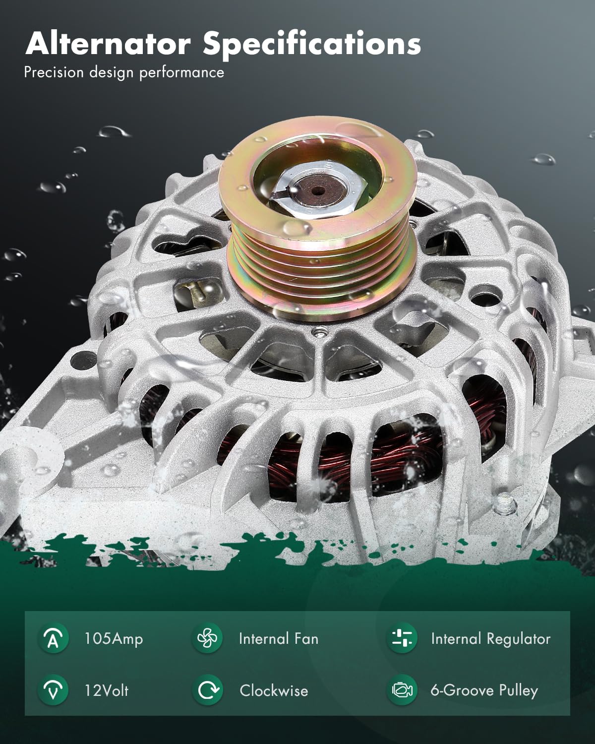 ?Alternator Fitment?- Automotive new alternator replacement for Ford for Mustang 4.6L 1999,for Ford for Mustang 4.6L 2000,for Ford for Mustang 4.6L 2001,for Ford for Mustang 4.6L 2002,for Ford for Mustang 4.6L 2003,for Ford for Mustang 4.6L 2004 | ?Alternators Specifications?- Voltage: 12V; Amperage: 105A; Rotation: CW(Clockwise); Regulator: IR ; Fan: IF; Grooves: 6-Groove Pulley; Condition: New, high output alternator is compact and lightweight, fully compatible with the electronic system of your vehicle | ?Car Alternator Reference Number?- Direct OEM replacement for your malfunctioning part, OE number : 8252 8252N AFD0059 XR3U-10300-AA XR3U-10300-AB XR3U-10300-AC XR3Z-10346-AA XR3Z-10346-AARM XR3Z-10V346-ABRM XR3U-AA XR3U-AB XR3U-AC GL424 | ?Easy Installation?- (1) Be sure to disconnect the negative electrode of the battery; (2) When replacing, pay attention to the appropriate tension of the transmission belt: if too loose, it may slip and cause insufficient power generation; If too tight, it can easily damage the belt and alternator bearings; (3) When replacing, pay attention to tightening all screws. If you have any problems during use, then get in touch with us, we will supply you with professional technical support | ?Note?SCITOO Auto supply alternator for most cars, SUVs, trucks and trailers. Please select your vehicle (year/make/model/trim) in the top left corner of the page to confirm compatibility or refer to the vehicle information in the description