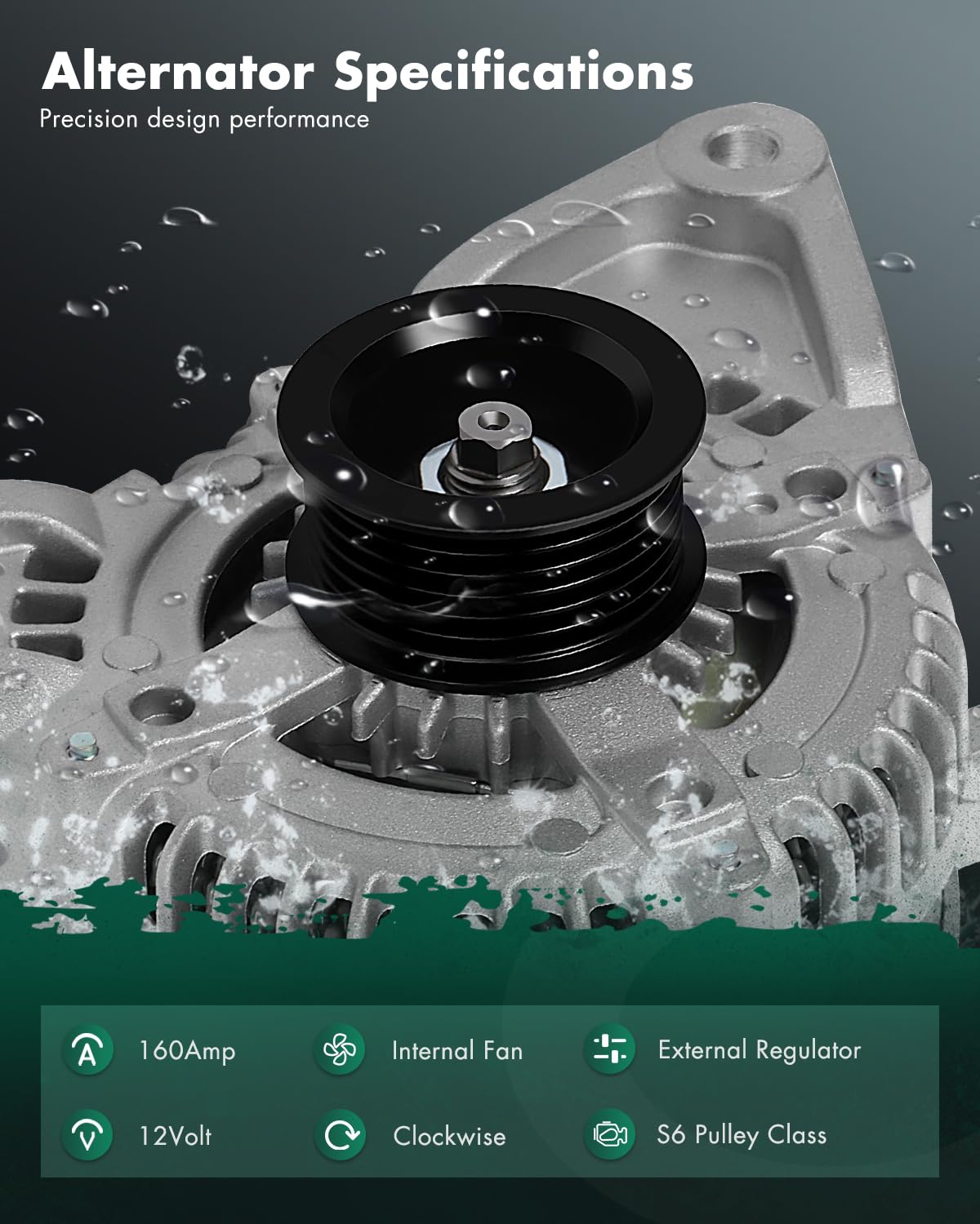 ?Alternator Fitment?- Automotive new alternator replacement for Jeep for Grand Cherokee 5.7L 2005,for Jeep for Grand Cherokee 5.7L 2006,for Jeep for Grand Cherokee 6.1L 2006 | ?Alternators Specifications?- Voltage: 12V; Amperage: 160A; Rotation: CW(Clockwise); Regulator: ER ; Fan: IF; Grooves: S6 Pulley Class; Condition: New, high output alternator is compact and lightweight, fully compatible with the electronic system of your vehicle | ?Car Alternator Reference Number?- Direct OEM replacement for your malfunctioning part, OE number : AND0405 VND0405 113804 56044380AC 56044380AH 421000-0360 421000-0363 11155 VDN11500201-A 11155R 1-2971-01ND | ?Easy Installation?- (1) Be sure to disconnect the negative electrode of the battery; (2) When replacing, pay attention to the appropriate tension of the transmission belt: if too loose, it may slip and cause insufficient power generation; If too tight, it can easily damage the belt and alternator bearings; (3) When replacing, pay attention to tightening all screws. If you have any problems during use, then get in touch with us, we will supply you with professional technical support | ?Note?SCITOO Auto supply alternator for most cars, SUVs, trucks and trailers. Please select your vehicle (year/make/model/trim) in the top left corner of the page to confirm compatibility or refer to the vehicle information in the description