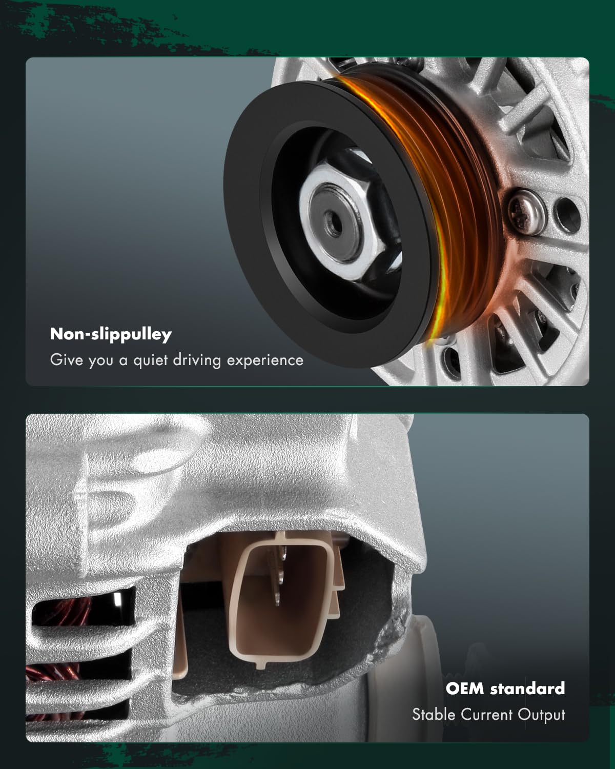 Fits For:for Mitsubishi for Lancer 2002-2004for Mitsubishi for Mirage 1998-2002Advantage:Highest quality componentsHigh temperature bearingCustom Overdrive Pulleycurrent stabilizationExceeds OEM specificationsAccelerated Loop Testinggreat performanceFocus on qualityAttentionsPlease check above compatibility list to make sure it fits your vehicle
