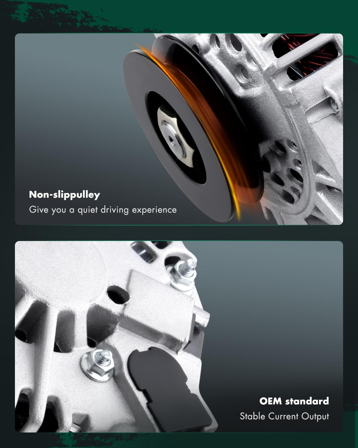 ?Alternator Fitment?- Automotive new alternator replacement for Nissan for Frontier 1998 1999 2000,for Nissan for Frontier 2001,for Nissan for Frontier 2002,for Nissan for Frontier 2003,for Nissan for Frontier 2004,for Nissan for Urvan 2000,for Nissan for Urvan 2001,for Nissan for Urvan 2002,for Nissan for Urvan 2003,for Nissan for Urvan 2004,for Nissan for Xterra 2000,for Nissan for Xterra 2001,for Nissan for Xterra 2002,for Nissan for Xterra 2003,for Nissan for Xterra 2004 | ?Alternators Specifications?- Voltage: 12V; Amperage: 70A; Rotation: CW(Clockwise); Regulator: IR ; Fan: IF; Grooves: 1-Groove Pulley; Condition: New, high output alternator is compact and lightweight, fully compatible with the electronic system of your vehicle | ?Car Alternator Reference Number?- Direct OEM replacement for your malfunctioning part, OE number : 13778 AHI0062 113197 LR170-757B LR170-765 LR170-766 LR170-766B 400-44034 13778 23100-3S500 23100-3S501 23100-9Z000 ALT-3716 1-2191-01HI | ?Easy Installation?- (1) Be sure to disconnect the negative electrode of the battery; (2) When replacing, pay attention to the appropriate tension of the transmission belt: if too loose, it may slip and cause insufficient power generation; If too tight, it can easily damage the belt and alternator bearings; (3) When replacing, pay attention to tightening all screws. If you have any problems during use, then get in touch with us, we will supply you with professional technical support | ?Note?SCITOO Auto supply alternator for most cars, SUVs, trucks and trailers. Please select your vehicle (year/make/model/trim) in the top left corner of the page to confirm compatibility or refer to the vehicle information in the description