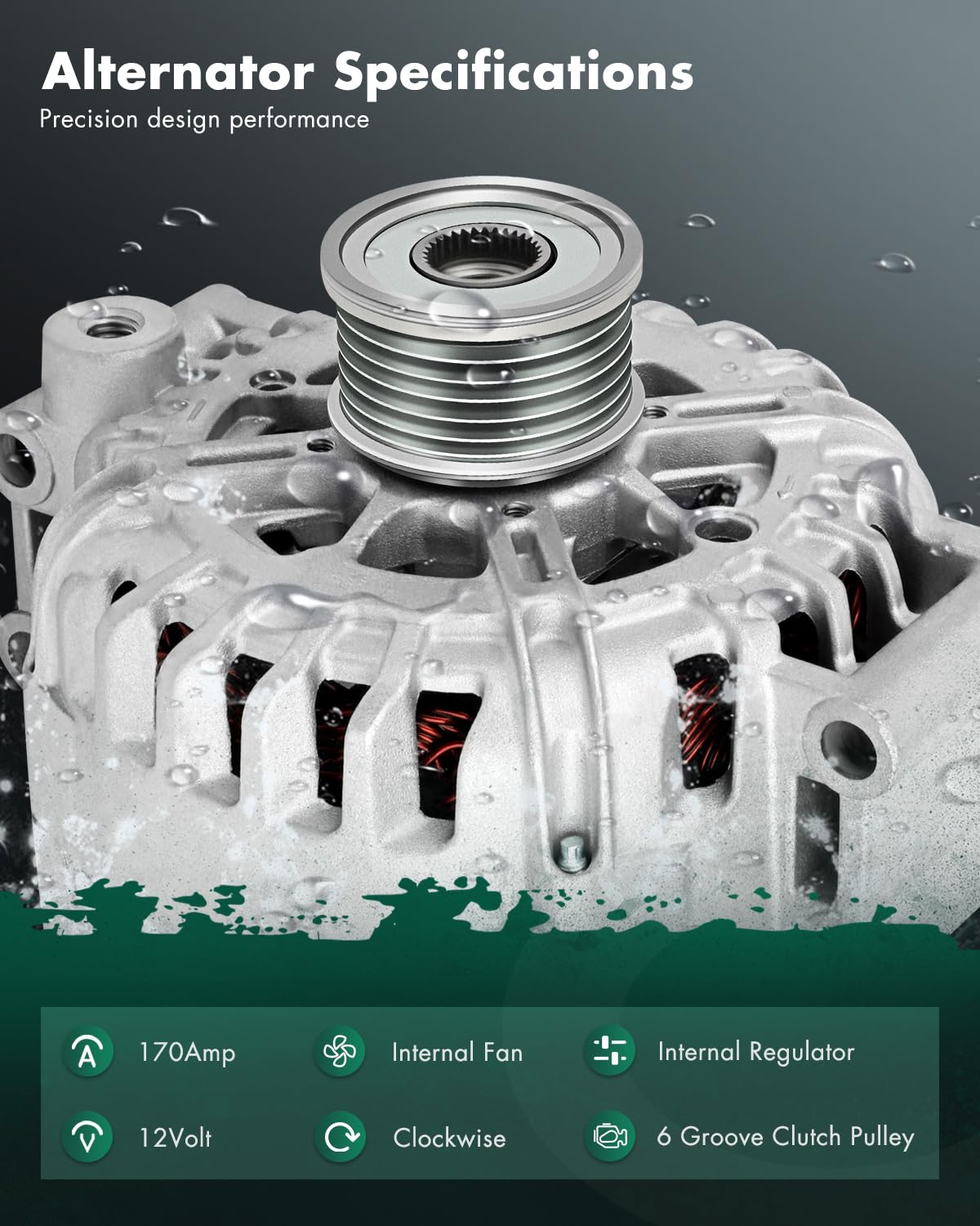 ??Compatibility - New alternator replacement for BMW 323I L6 2.5L 2006, 325I L6 3.0L 2006, 325XI L6 3.0L 2006, 330I L6 3.0L 2006, 525I L6 3.0L 2006-2007, 525XI L6 3.0L 2006-2007, 530I L6 3.0L 2006-2007, 530XI L6 3.0L 2006-2007 | ??Alternator Specifications - Part Type: UNIT, Voltage: 12, Rotation: CW, Amperage: 170, Pulley Class: SC6, high output alternator is compact and lightweight, fully compatible with the equipment system of your vehicle. | ??Alternator OEM - Direct OEM replacement for your malfunctioning part, OE number - 11260 , 11260, 2542720, 2542720F, TG17C015 | ??Premium Alternators - Automotive replacement alternators throught precision CNC machined castings, increased output and additional provisions for cooling: Internal Fan; that reduce stress on the alternator and increase its life expectancy for a more reliable driving experience? | ??Reliable Alternator Replacement - Bearing 100% tested to OE standards and repacked with OEM grade lubricant. All dimensions, key mounting surfaces, and contact points are gauged and measured for proper fit. Throught igorous and accelerated cycling tests to ensure the quality and durability of product.