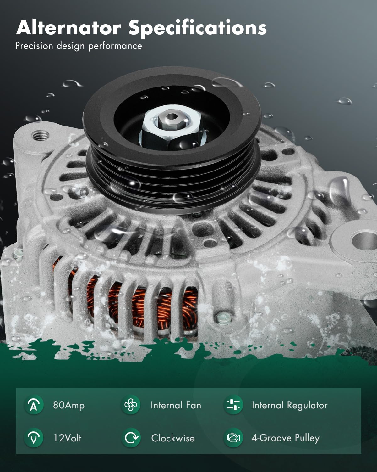 ?Alternator Fitment?- Automotive new alternator replacement for Toyota for Yaris 1.5L 2010,for Toyota for Yaris 1.5L 2011,for Toyota for Yaris 1.5L 2012,for Toyota for Yaris 1.5L 2013,for Toyota for Yaris 1.5L 2014,for Toyota for Yaris 1.5L 2015 | ?High-Performance Specifications? - Engineered with Voltage: 12V; Amperage: 80Amp; Rotation: CW (Clockwise); Regulator: IR (Internal Regulator) ; Fan: IF (Internal Fan); Grooves: 4-Groove Pulley; Condition: New, high output alternator is compact and lightweight, fully compatible with the electronic system of your vehicle, this automotive replacement alternator delivers reliable power for your car, it
