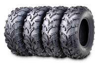 Full set 2 fronts and 2 rears for complete tire replacement. Durable, light weight, smooth rolling design provides quicker acceleration and braking. Deep, widely spaced tread bras shed mud, Excel in a wide variety of terrains. Super smooth ride in both soft and hard packed terrain.. Heavy 6 ply rated construction resists punctures and abrasionsTire SpecificationsTire Size: 25X8-12Brand: WANDATread Pattern: P373Ply Rated: 6Tread Depth: 16Rim Width: 6Max Load: 340lbs@7psiLoad Index: 43Speed Rating: JTire SpecificationsTire Size: 25X11-10Brand: WANDATread Pattern: P373Ply Rated: 6Tread Depth: 0.63Rim Width: 9Max Load: 410lbs@7psiLoad Index: 49Speed Rating: JPlease note: fitment guide is for reference only and does not guarantee the tire will fit your specific model. Please check your owner's manual to ensure proper fitment.