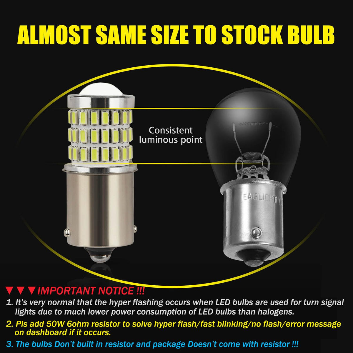 Q: Can I use these LED bulbs for turn signal lights?A: Yes, the AUXLIGHT 1156 LED bulbs can be used for turn signal lights, but it's important to note that due to their lower power consumption compared to halogen bulbs, they may cause hyper flashing. To resolve this, a 50W 6-ohm load resistor is recommended.