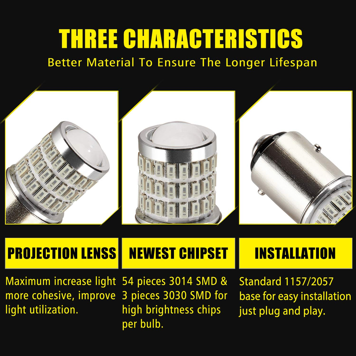 Auxlight 2057 1157 2357 7528 2057A 1157A 2357A Led Bulbs Brilliant Red, Ultra Bright 57-Smd Led Replacement For Brake/Tail Lights, Blinker Lights, Turn Signal/Parking Or Running Lights (Pack Of 2)