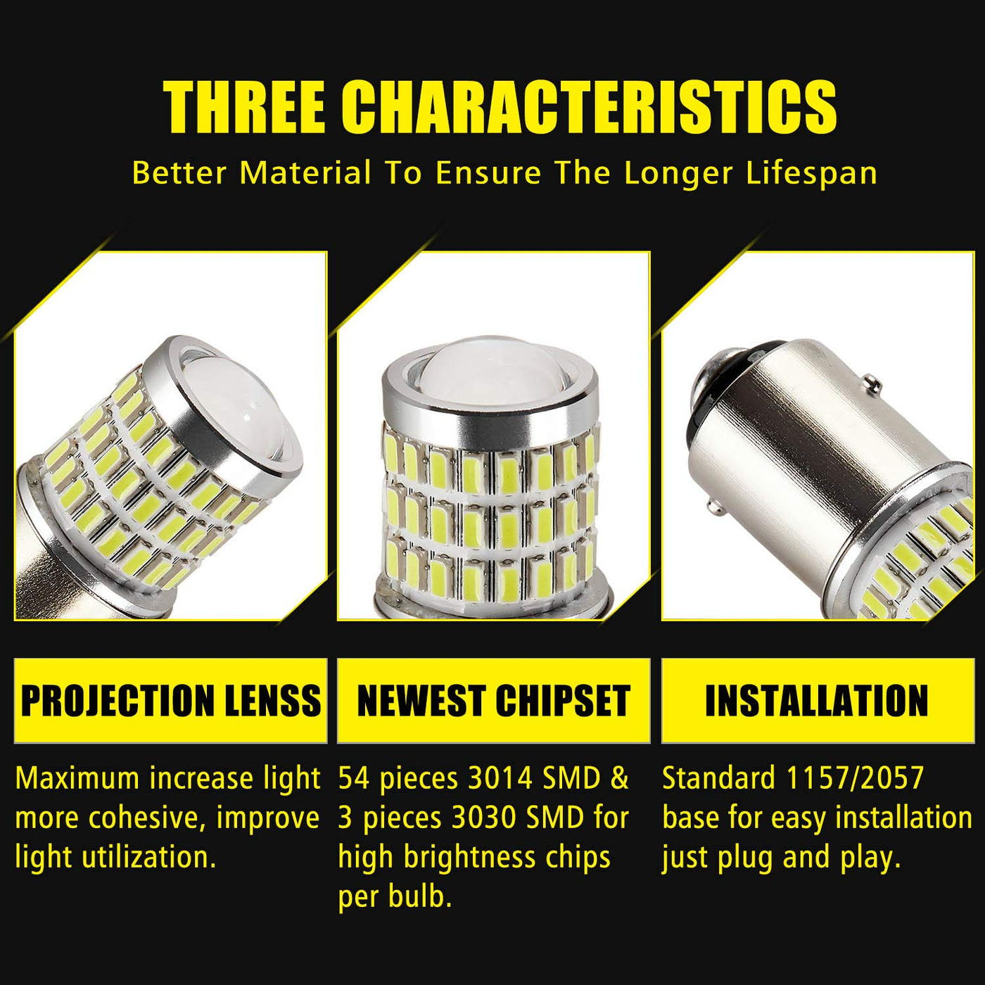 Q: What is the lifespan of the AUXLIGHT 2057 LED bulbs?A: The AUXLIGHT 2057 LED bulbs have an impressive lifespan of over 50,000 working hours, making them a durable and long-lasting choice for your vehicle's lighting needs.