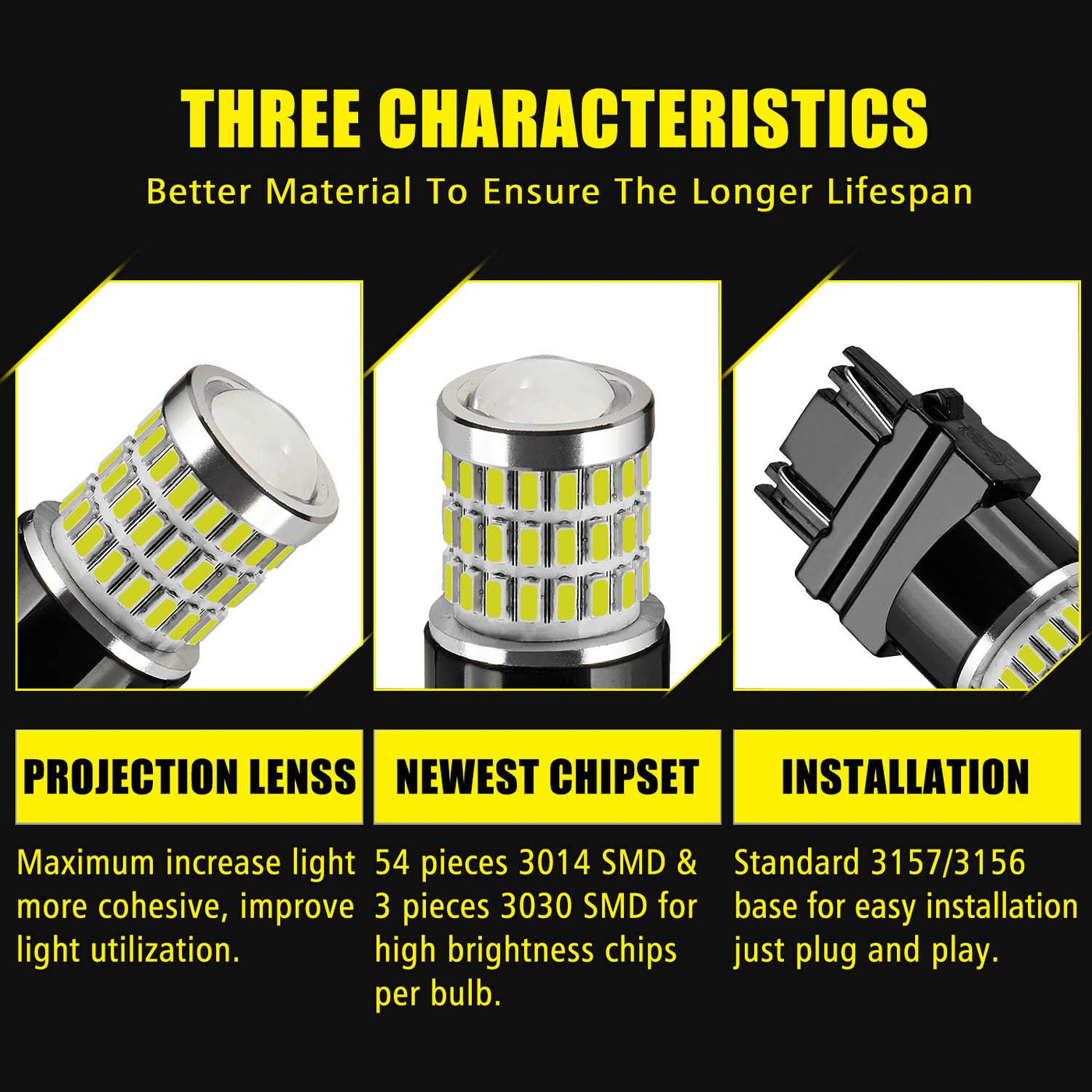 Auxlight 3157 3156 3057 4157 3157K Led Bulbs Xenon White, Ultra Bright 57-Smd Led Replacement For Back Up/Reverse Lights, Brake/Tail Lights, Turn Signal/Parking Or Running Lights (Pack Of 2)