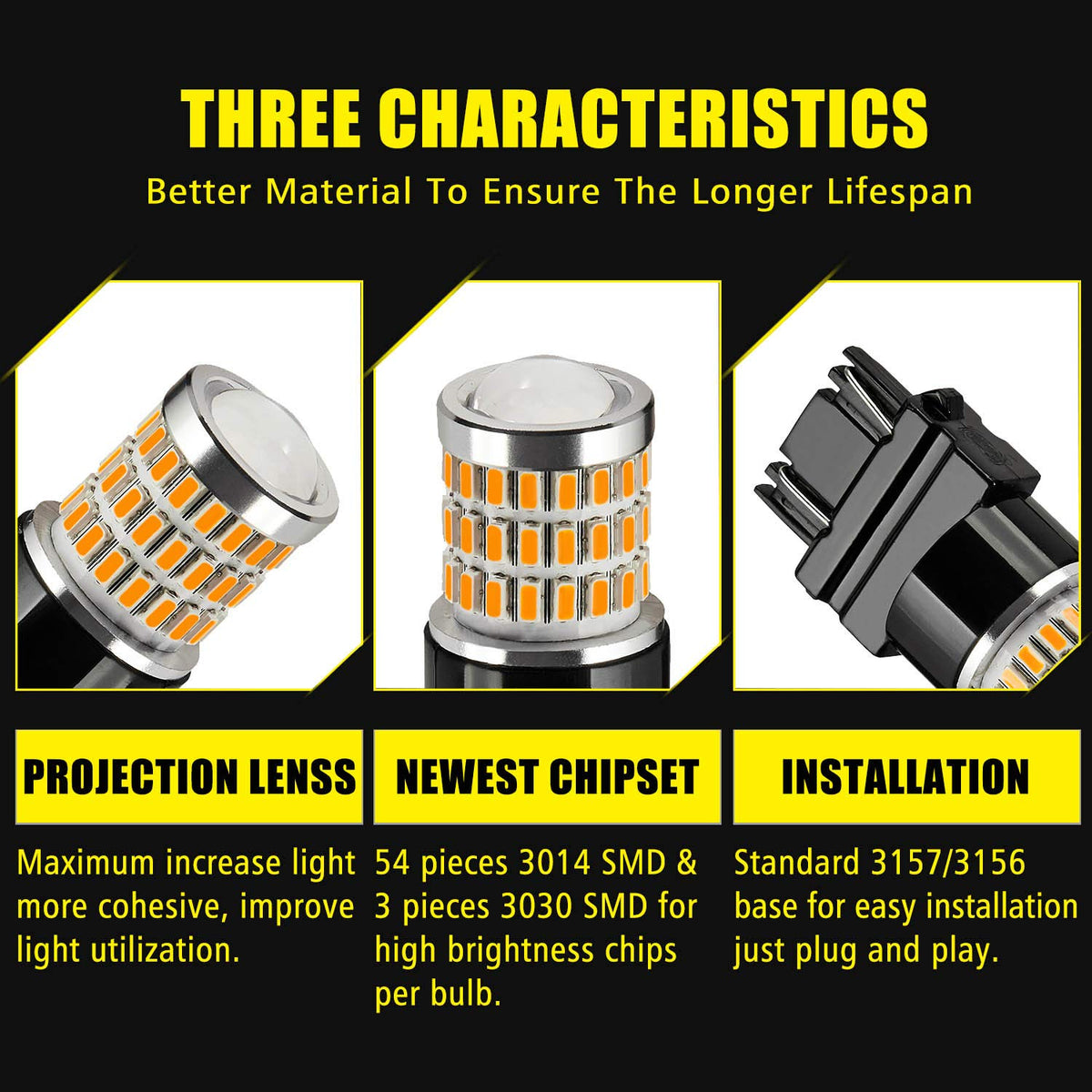 Auxlight 3157 3156 4157 3057 3357 Led Bulbs, Ultra Bright 57-Smd Led Replacement For Turn Signal Blinker Lights, Brake/Tail Lights, Parking/Running Lights, Amber Yellow (Pack Of 2)