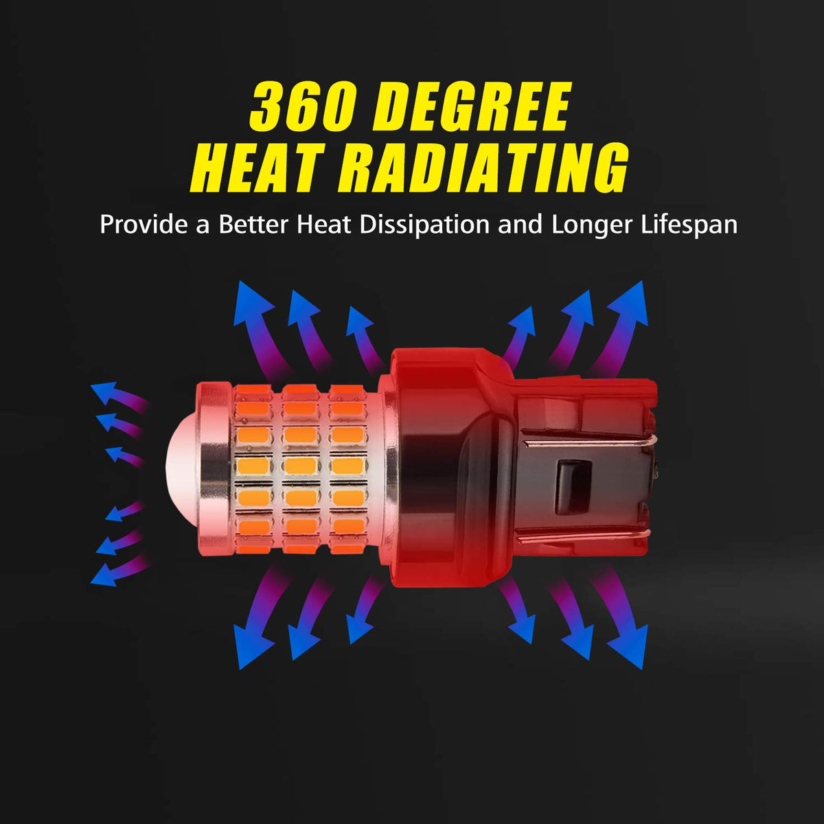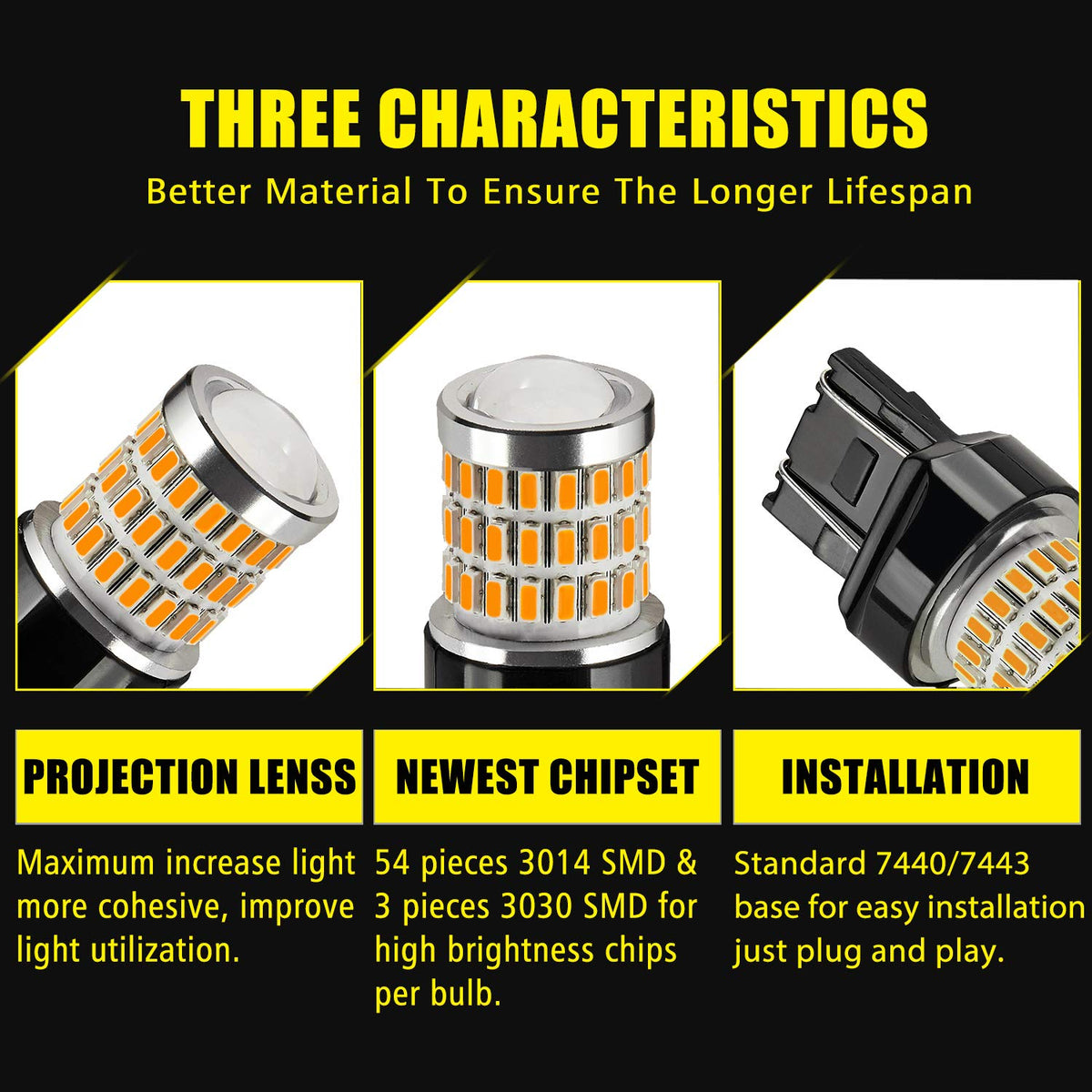 Auxlight 7440 7441 7443 7444 T20 992 W21W Led Bulbs Amber Yellow, Ultra Bright 57-Smd Led Replacement For Blinker Lights, Turn Signal/Parking Or Running Lights, Brake/Tail Lights (Pack Of 2)