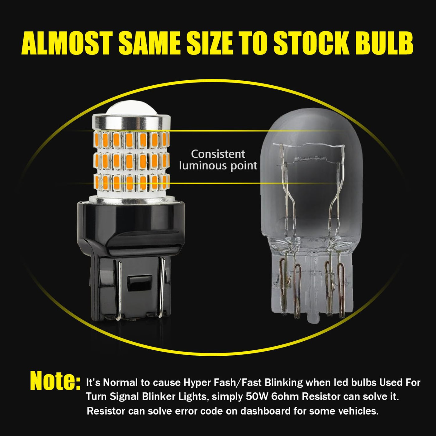???CHECK BEFORE PURCHASING!!! 1.It’s normal to cause hyper flash/fast blinking when led bulbs used for turn signal lights, simply add the 50W 6ohm resistor to solve it. 2.If bulbs happen to error code on dashboard/bulb flicker, resistor can solve it as well. 3.If you receive defective products, please contact us by Amazon or our Support E-mail that's on the package at the first time, we will send the new working replacements to you.