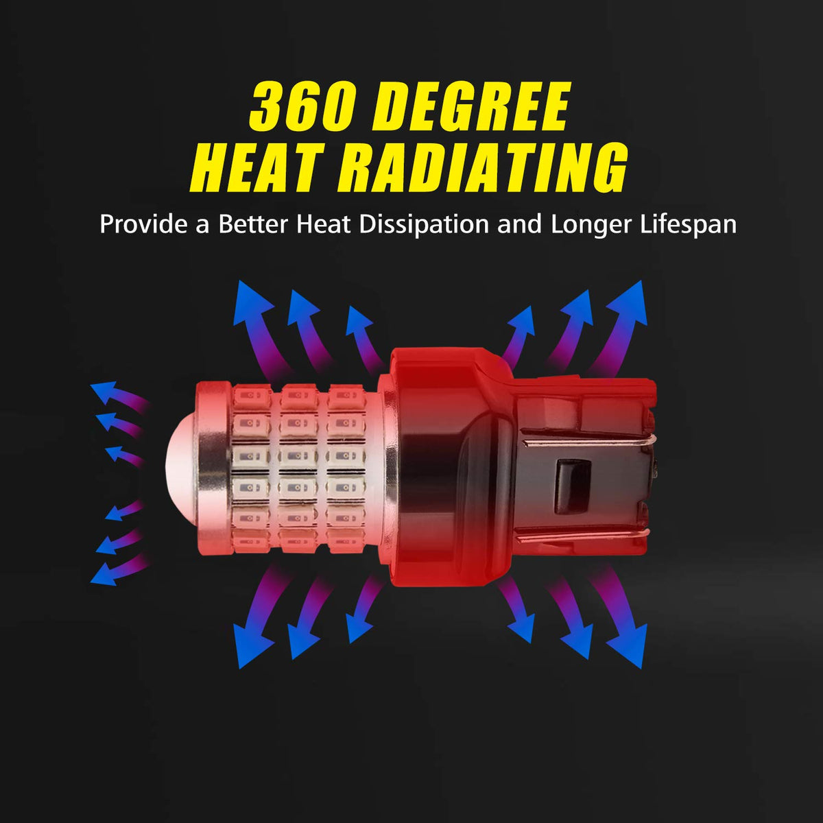 Auxlight 7440 7441 7443 7444 T20 992 W21W Led Bulbs Brilliant Red, Ultra Bright 57-Smd Led Replacement For Brake/Tail Lights, Blinker Lights, Turn Signal/Parking Or Running Lights (Pack Of 2)