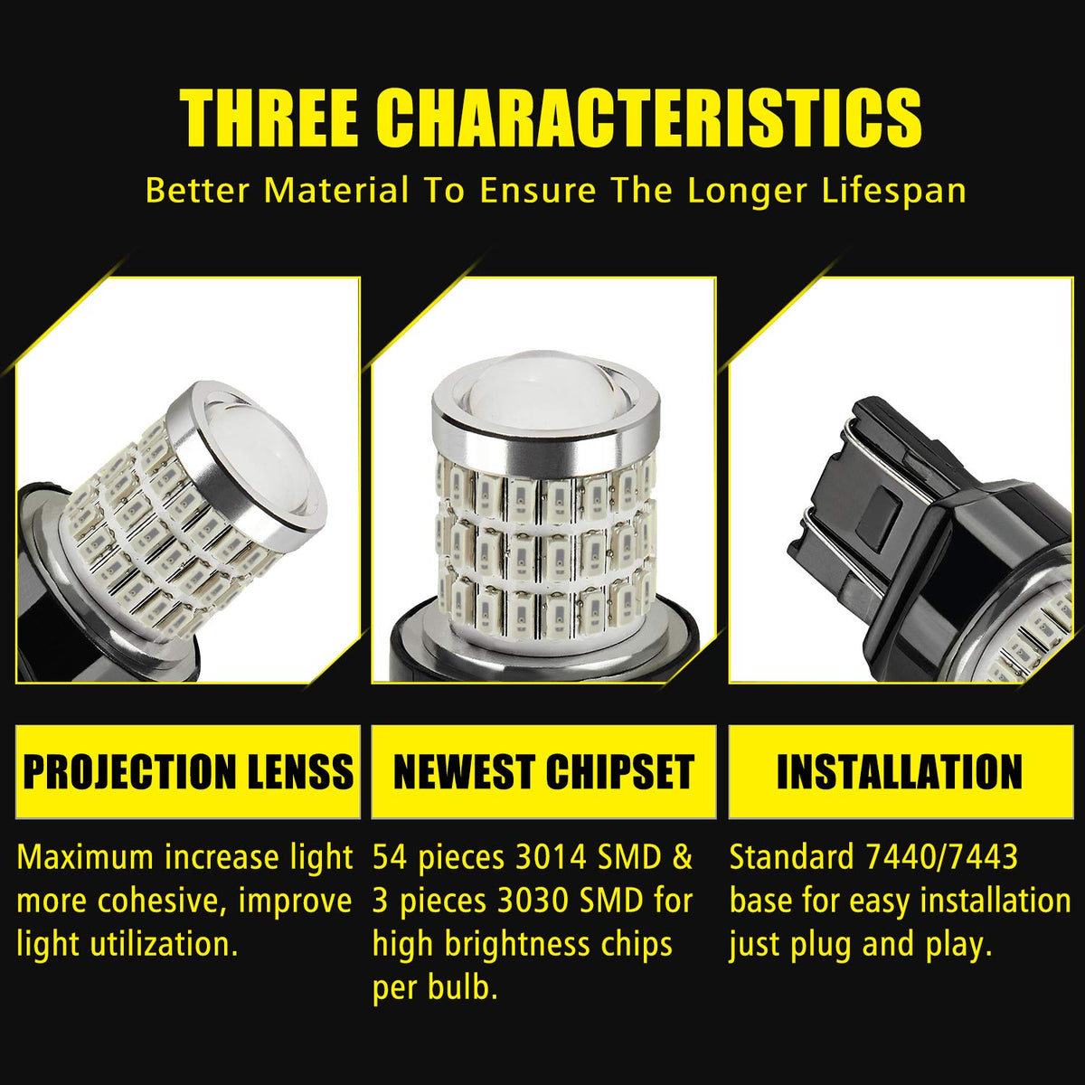 Q: What is the lifespan of the AUXLIGHT 7440 LED bulbs?A: The AUXLIGHT 7440 LED bulbs have a lifespan of over 50,000 working hours, making them a durable and long-lasting choice for your vehicle's lighting needs.