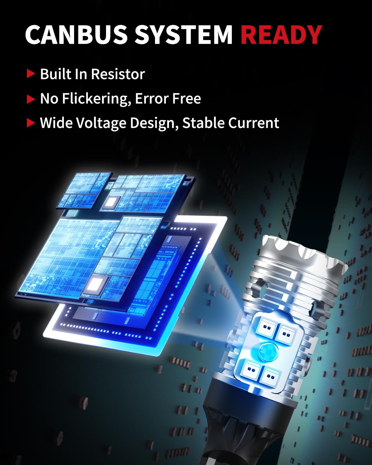 Q: Do these LED bulbs prevent hyper flashing or error codes?A: Yes, LASFIT 921 LED bulbs are Canbus ready, designed to eliminate the risk of hyper flashing and prevent any error codes from appearing on your vehicle's dashboard, ensuring seamless performance.
