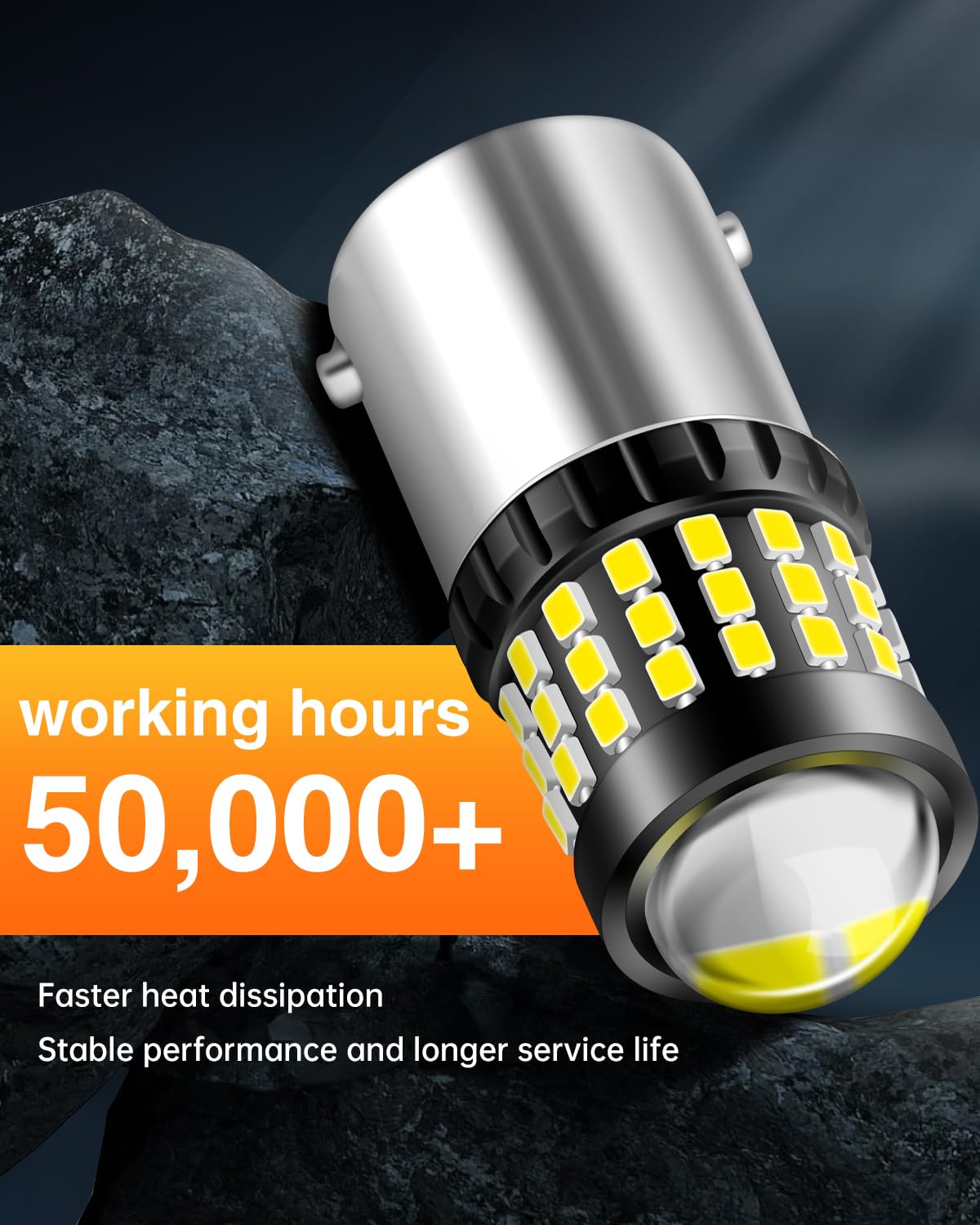 Q: What is the lifespan of the LUYED 1156 LED Bulb?A: The LUYED 1156 LED Bulb has an estimated lifespan of up to 50,000 hours. This long lifespan is due to its built-in intelligent IC driver and aviation aluminum material, which ensure stable performance and effective heat dissipation.