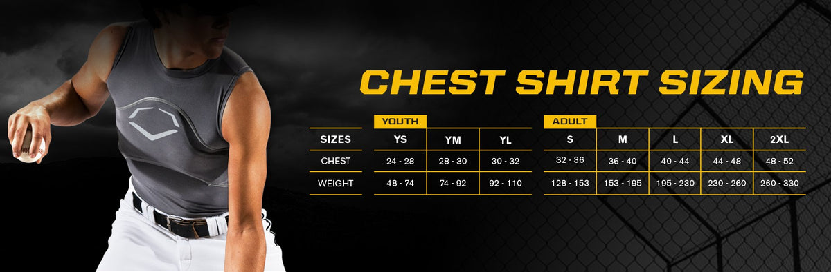 Evoshield Youth Gel-To-Shell Sleeveless Chest Guard Shirtthe Evoshield Youth Gel-To-Shell Sleeveless Chest Guard Shirt Is Designed To Protect Young Players By Dispersing Ball Impact To The Chest Area. A Pocket In The Compression Shirt Holds The Thin Custom-Molded Protective Shield In Place Without Hindering Their Flexibility Or Range Of Motion. Wearing This Baseball Body Protection Gear Will Boost Their Confidence And Give You Some Piece Of Mind.Features: * Compression-Fit Shirt With Chest Pocket For Custom-Molding Protection * 1/4' Thin Gel-To-Shell Shields Allow For Complete Comfort And Flexibility * Disperses Impact And Protects Better Than Traditional Foam And Plastic Gear * Engineered With Swagtech Moisture-Wicking Technology To Keep You Dry * Shirt Fabric Is Machine Washable, Air Dry * Shields Are Removable And Hand Washable * Shirt Material: 84% Polyester, 16% Spandex * Youth Sizes: S (24-28); M (28-30); L (30-32)