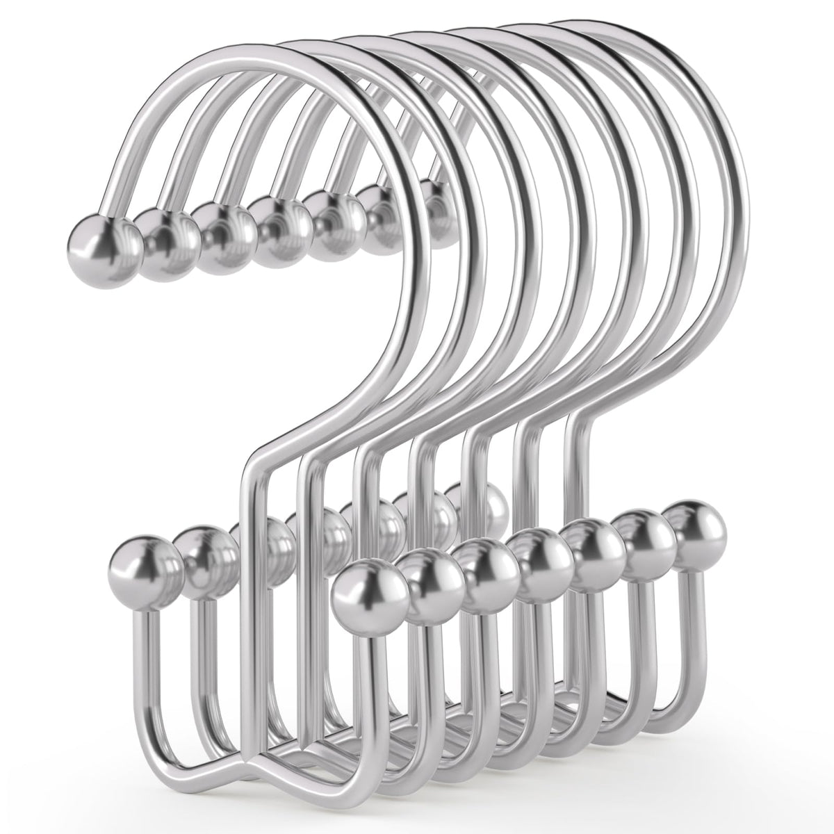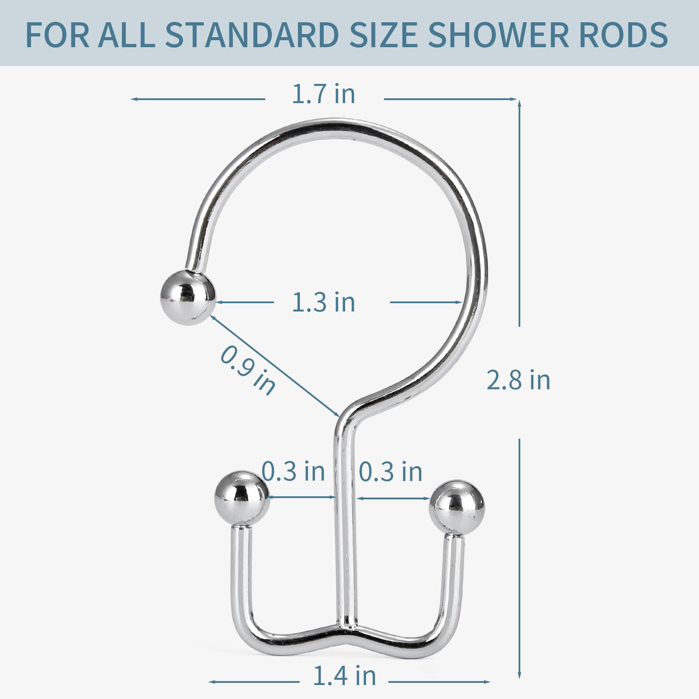 Q: Are the shower curtain hooks easy to install?A: Yes, the double hooks design allows for easy installation and removal of shower curtains and liners, and they are compatible with all standard size shower curtain rods.