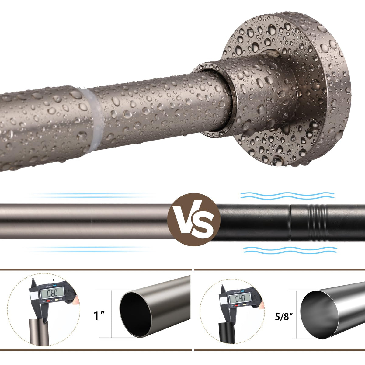 Heavy Duty: Unique 1cm Thick Steel Connectors for 2-way connection , Provide Powerful Support While others only 0.3mm. This Heavy Duty Shower Curtain Rod Max Load 40 Lbs.