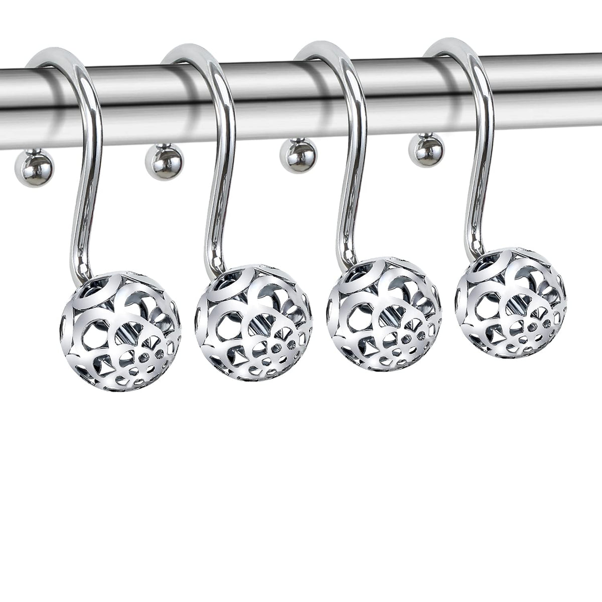 Chictie Silver Shower Curtain Hooks - Oil Rubbed Chrome Decorative Shower Curtain Rings,Set Of 12 Bling Metal Rustproof Shower Hangers For Bathroom Curtains Rods Hollow Ball Design