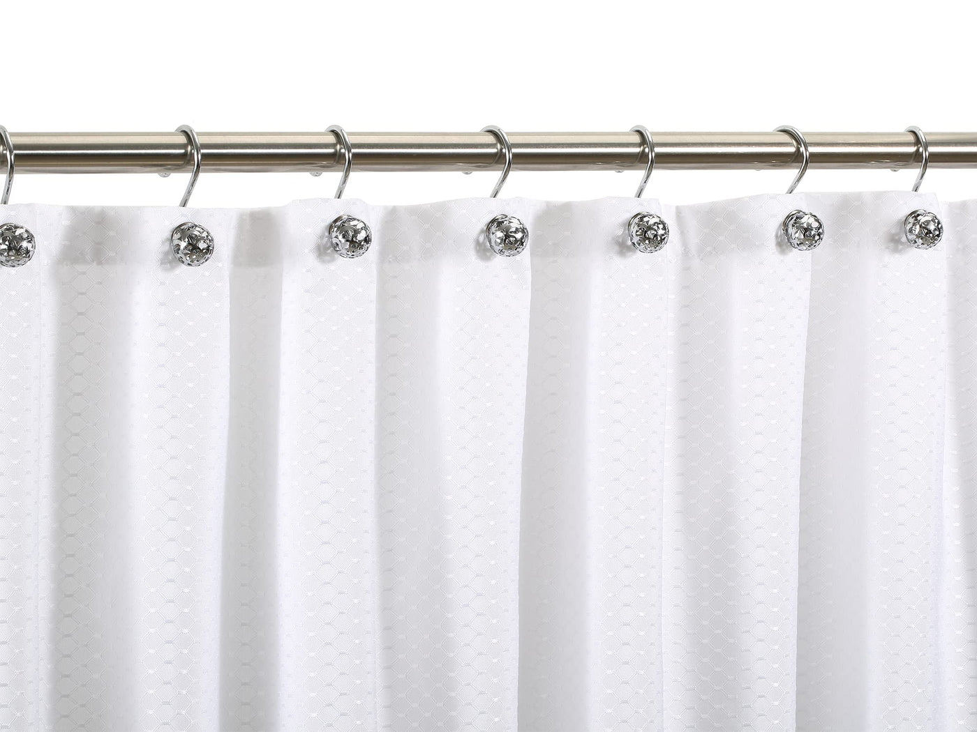 Q: How do I install these shower curtain hooks?A: Installation is quick and easy! Simply slip the ends of the hooks through the existing holes in your shower curtain and hang them over the rod without the need to remove the rod itself.