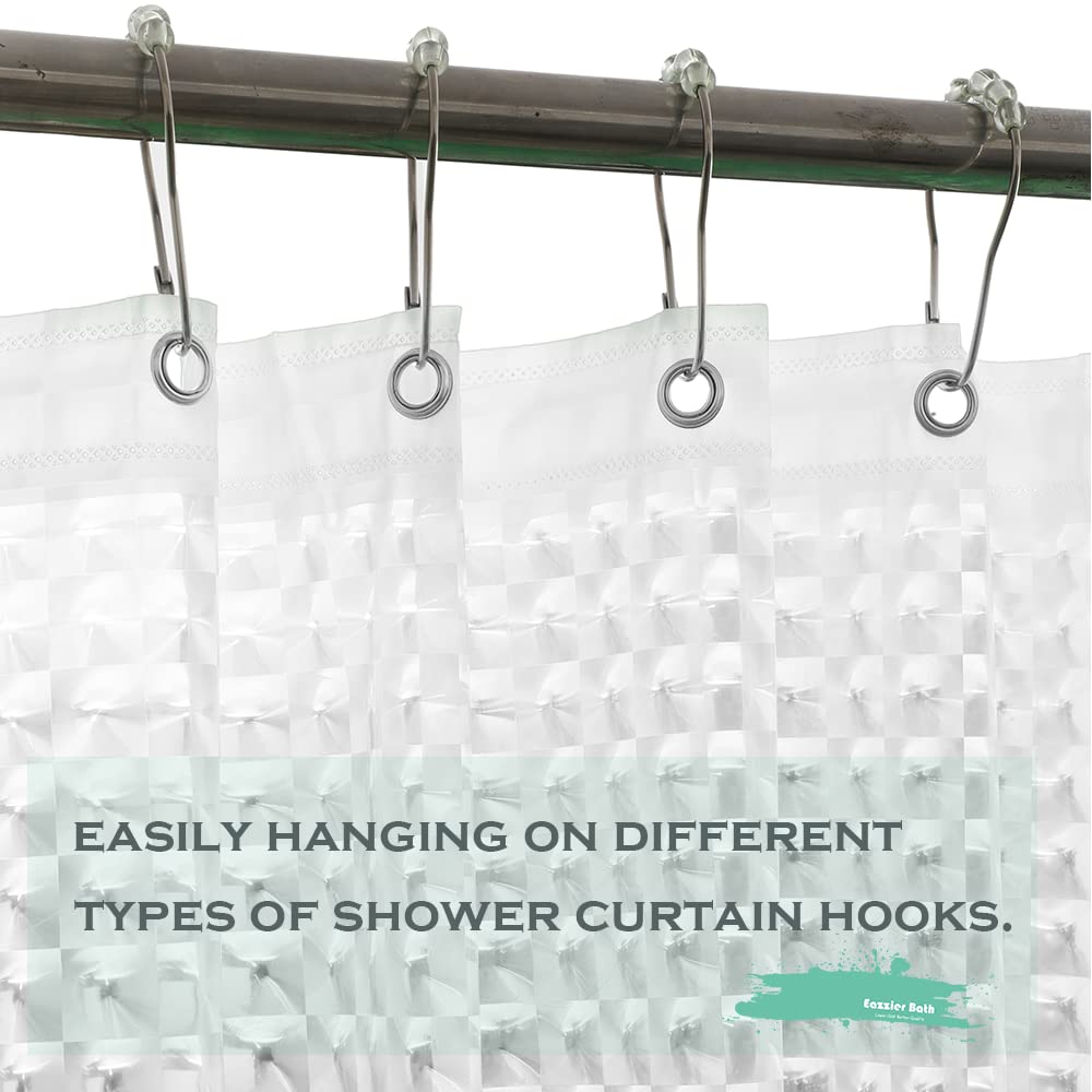 Eazzier Bath Extra Long - 3D Crystal Clear Plastic Shower Curtain Liner, 72X80 Inch Thin Lightweight Ice Cube Plastic Shower Inner Curtain With Rustproof Metal Grommet Holes And Weighted Magnets