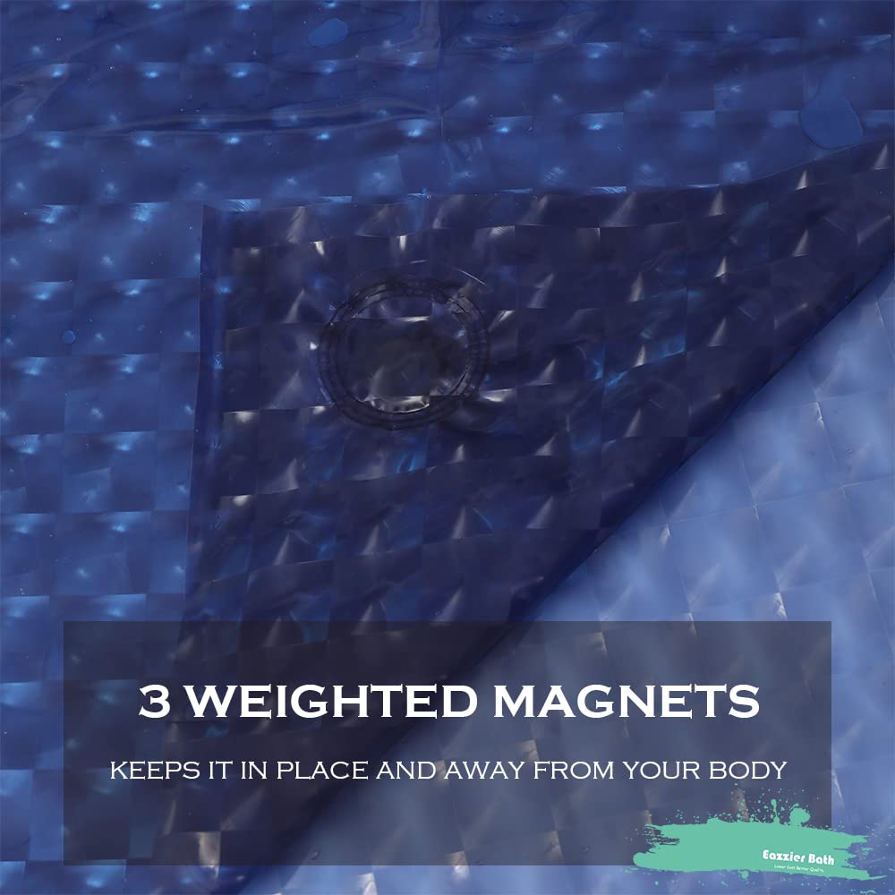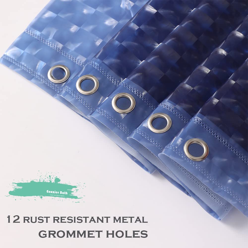 Eazzier Bath Navy Blue 3D Crystal Plastic Shower Curtain Liner, 72X72 Inch Thin Lightweight Plastic Bathroom Shower Showroom Inner Curtain With Rustproof Metal Grommet Holes And Weighted Magnets