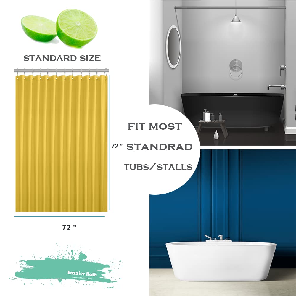 Eazzier Bath Yellow Cream Plastic Shower Curtain Or Liner, 72X72 Inch Lightweight Yellow Plastic Bathroom Shower Showroom Inner Curtain With Rustproof Metal Grommet Holes And Weighted Magnets
