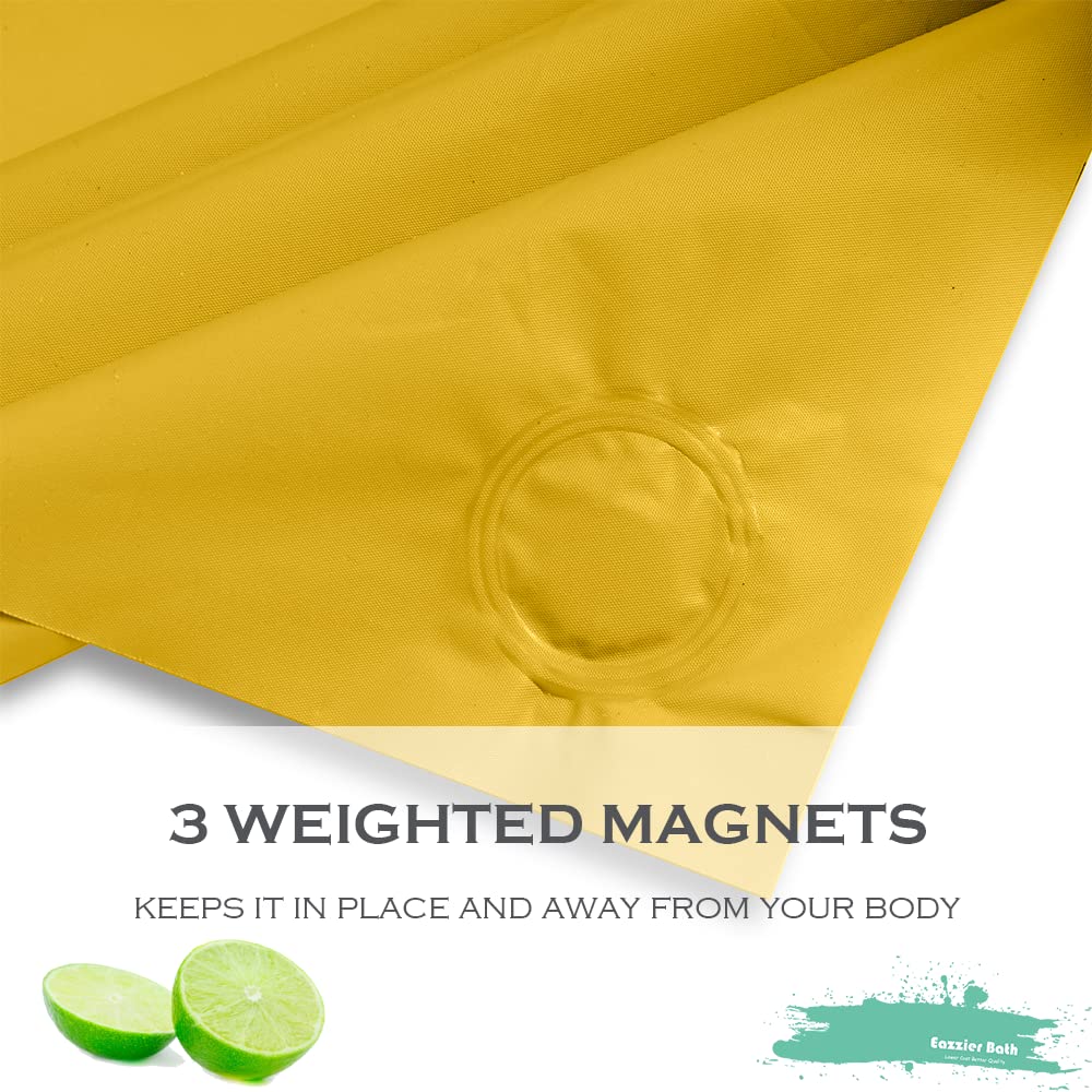Q: Is the Eazzier Bath Yellow Cream Plastic Shower Curtain waterproof?A: Yes, the Eazzier Bath Yellow Cream Plastic Shower Curtain is 100% water-repellent. Its special design allows water to roll off quickly, helping to keep your bathroom dry.