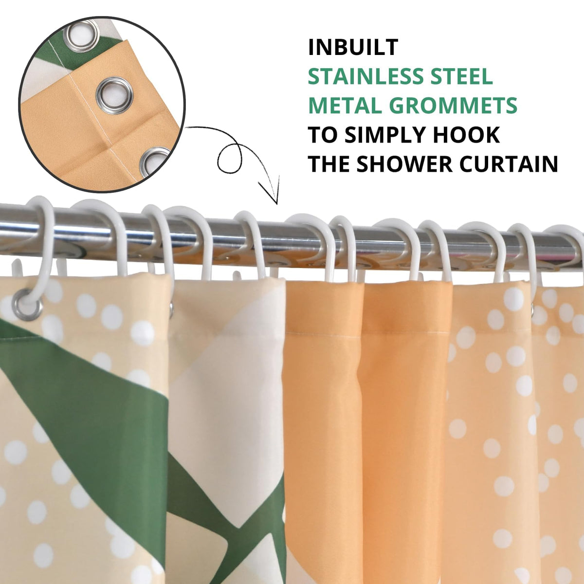 Q: What material is the GKLEASG Mid Century Shower Curtain made of?A: The GKLEASG Mid Century Shower Curtain is made of high-quality polyester, which is known for its durability, water repellency, and ease of maintenance.