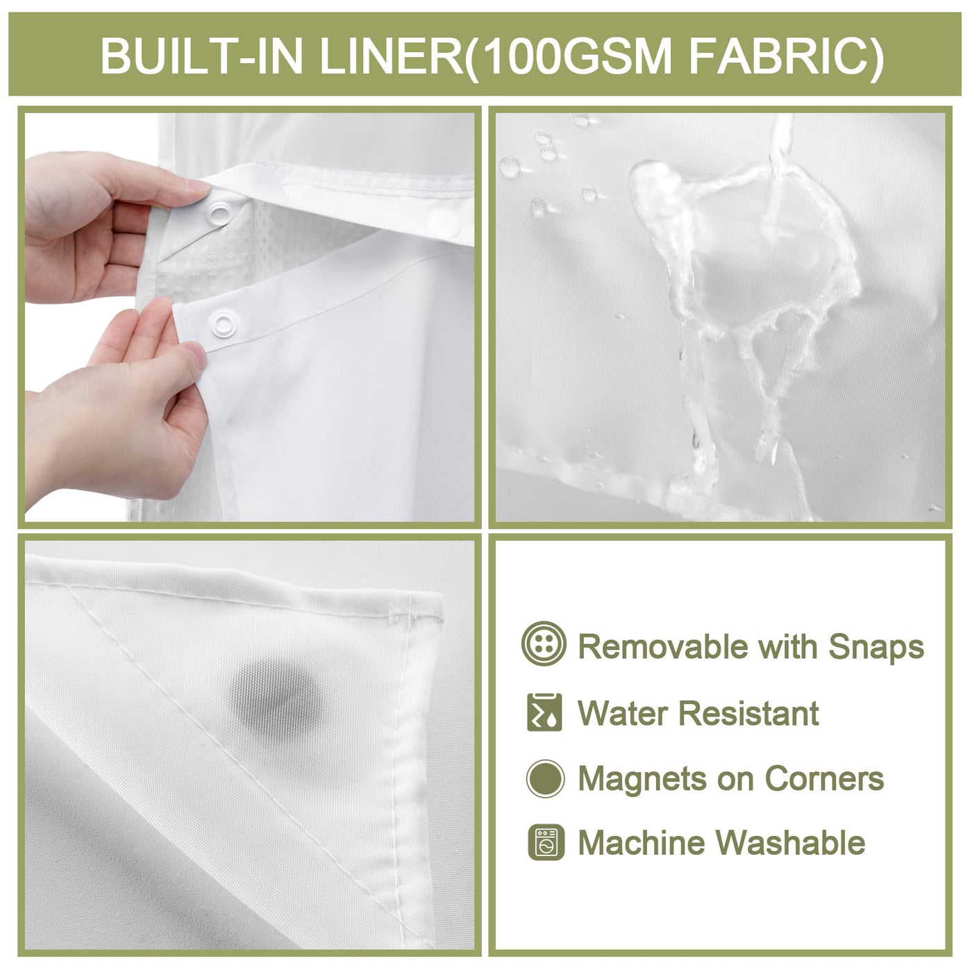 Enhanced Stability: Experience a worry-free shower time with our innovative design featuring two weighted bottom corner magnets. These magnets ensure that the liner stays perfectly in place, preventing annoying billowing or clinging during use.