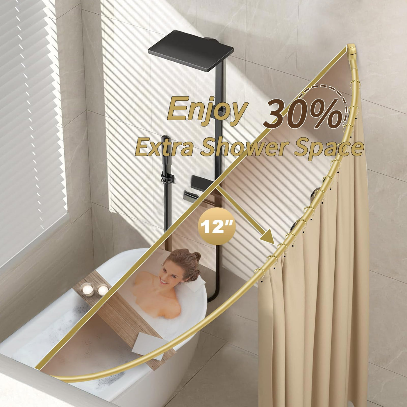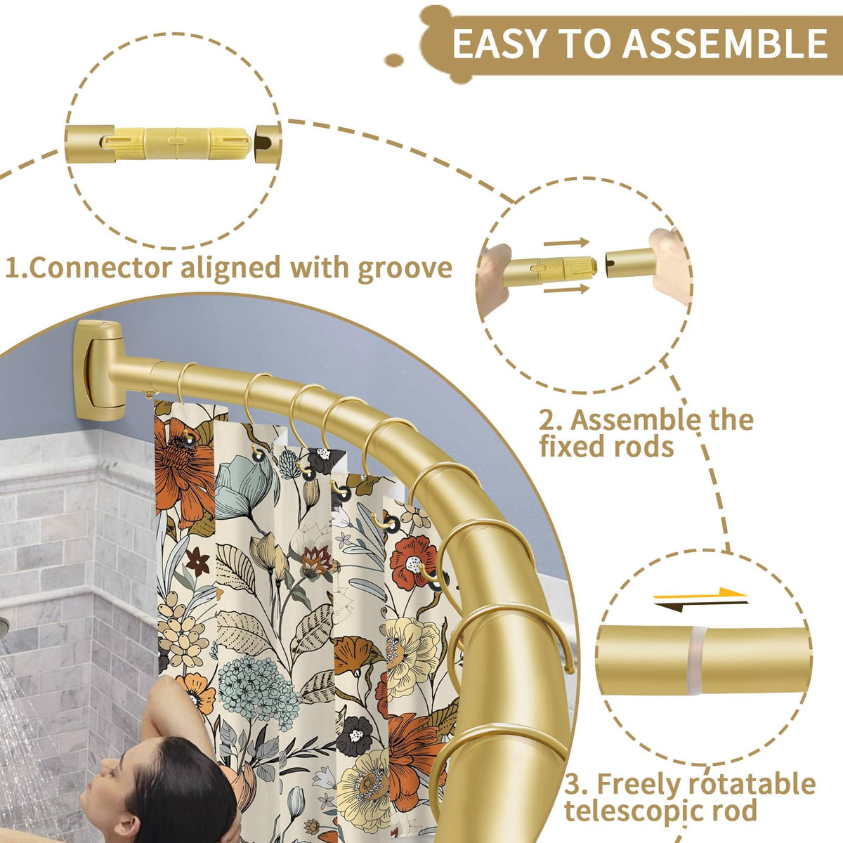 Q: What are the benefits of using a curved shower curtain rod?A: The curved design of the YNL shower curtain rod provides an extra 12 inches of space, maximizing your shower area and preventing the curtain from sticking to your body for a more comfortable experience.