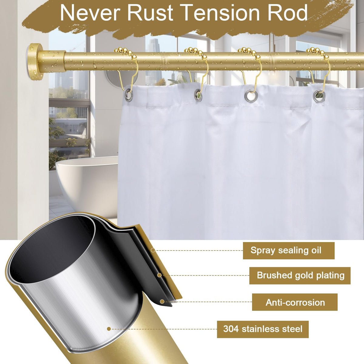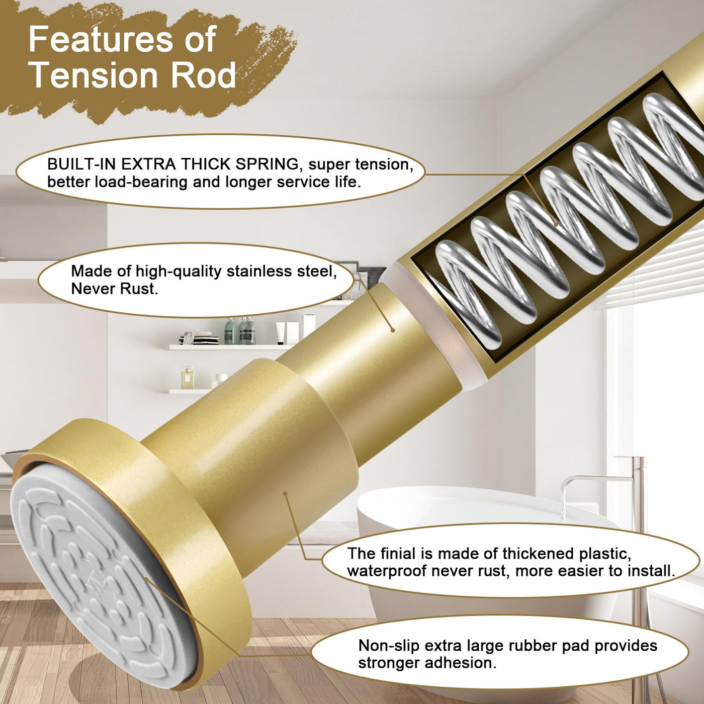 Ynl Gold Shower Curtain Rod 32-94 Inch(2.7-7.8Ft), Non-Slip, Never Rust, Stainless Steel No Drill Spring Tension Shower Rod, Adjustable Long Curtain Rod For Bathroom Window Patio