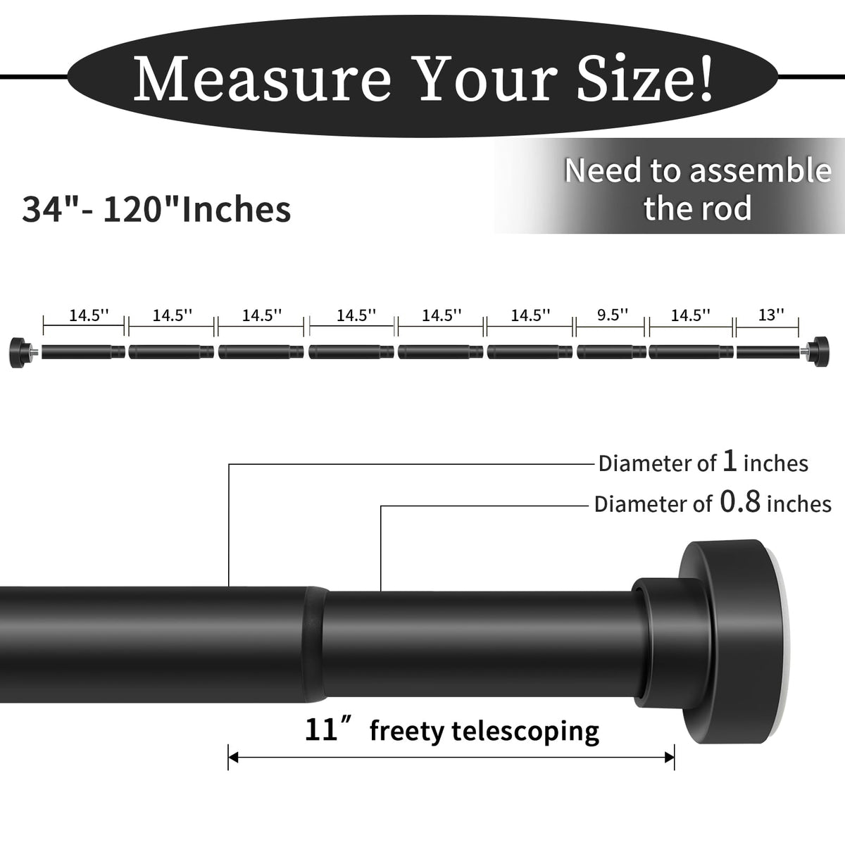 Ynl Shower Curtain Rod 34 To 120 Inches, Tension Curtain Rod With 2Pcs Holders, Adjustable 34-120 Inches, Matte Black