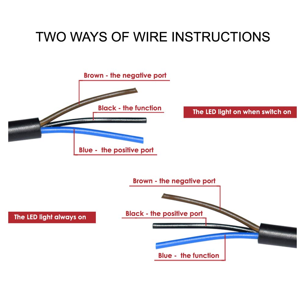 The Led Light On When Switch On: Blue - The Positive Port, Brown - The Negative Port, Black - The Function.