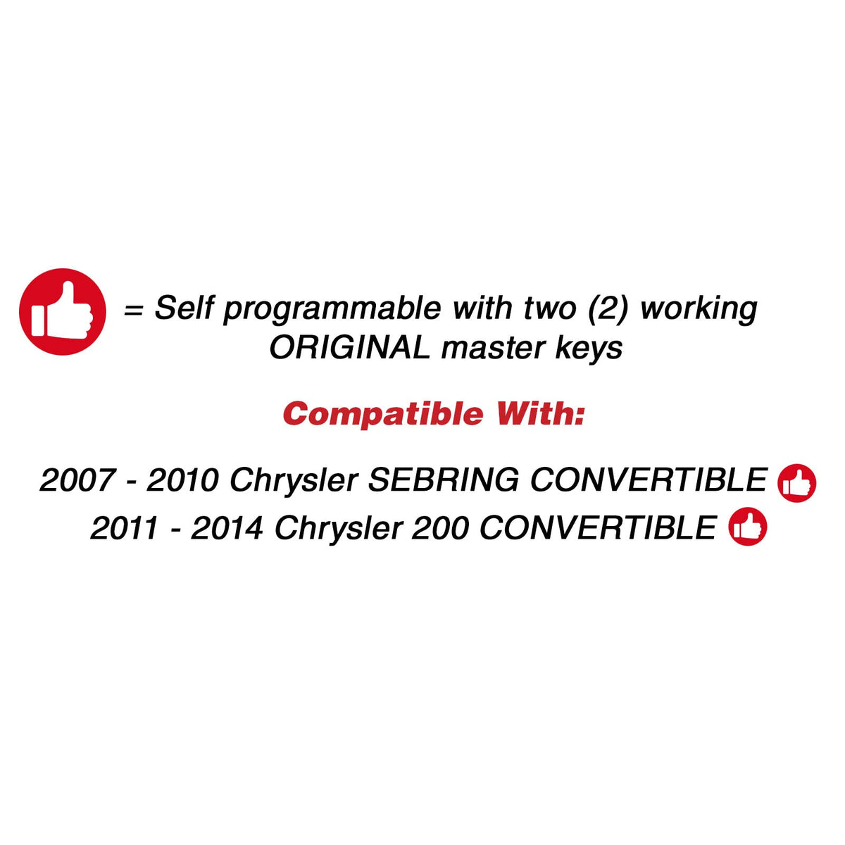 Q: Is this key fob compatible with all Chrysler Sebring models?A: Yes, this key fob is designed specifically for Chrysler Sebring vehicles. Ensure your model matches the part numbers OHT692427AA or OHT692713AA for compatibility.