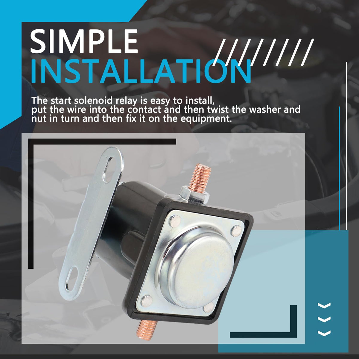 Q: What are the key features of this starter relay solenoid?A: This starter relay solenoid features a high-quality copper coil for durability, a galvanized external contact for corrosion resistance, a 4-terminal design for easy installation, and a grounded base for improved stability and safety during operation.