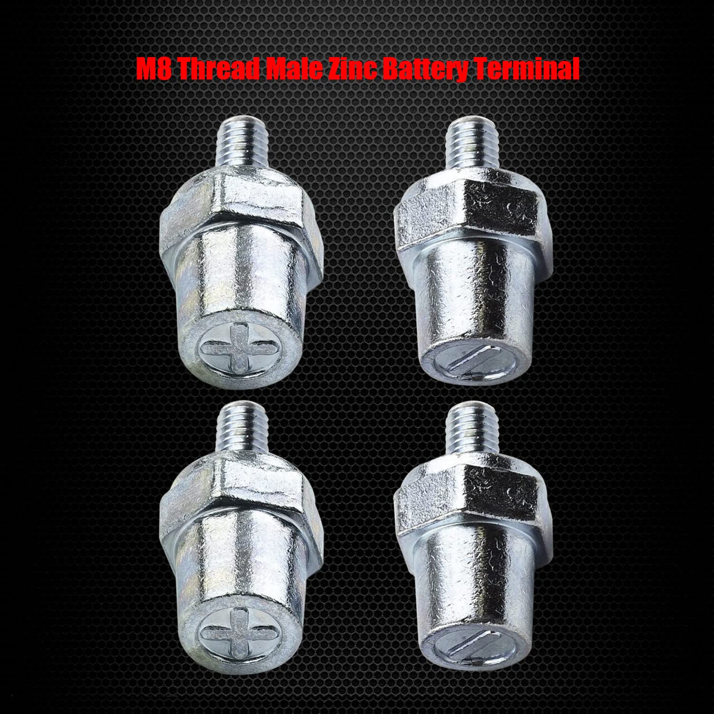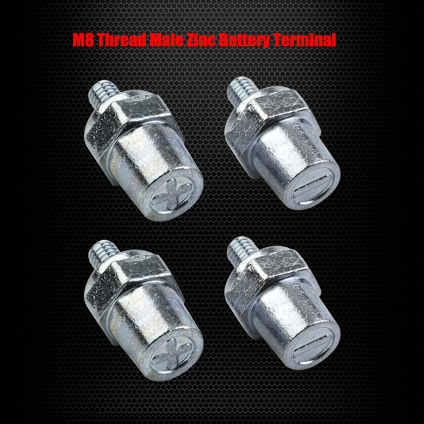 Ampper M8 Thread Male Zinc Battery Charging Post Terminals, M8 Battery Post Adapter (+/-) For Extension, Pack Of 4