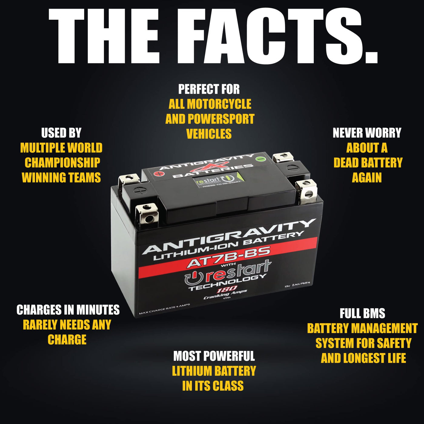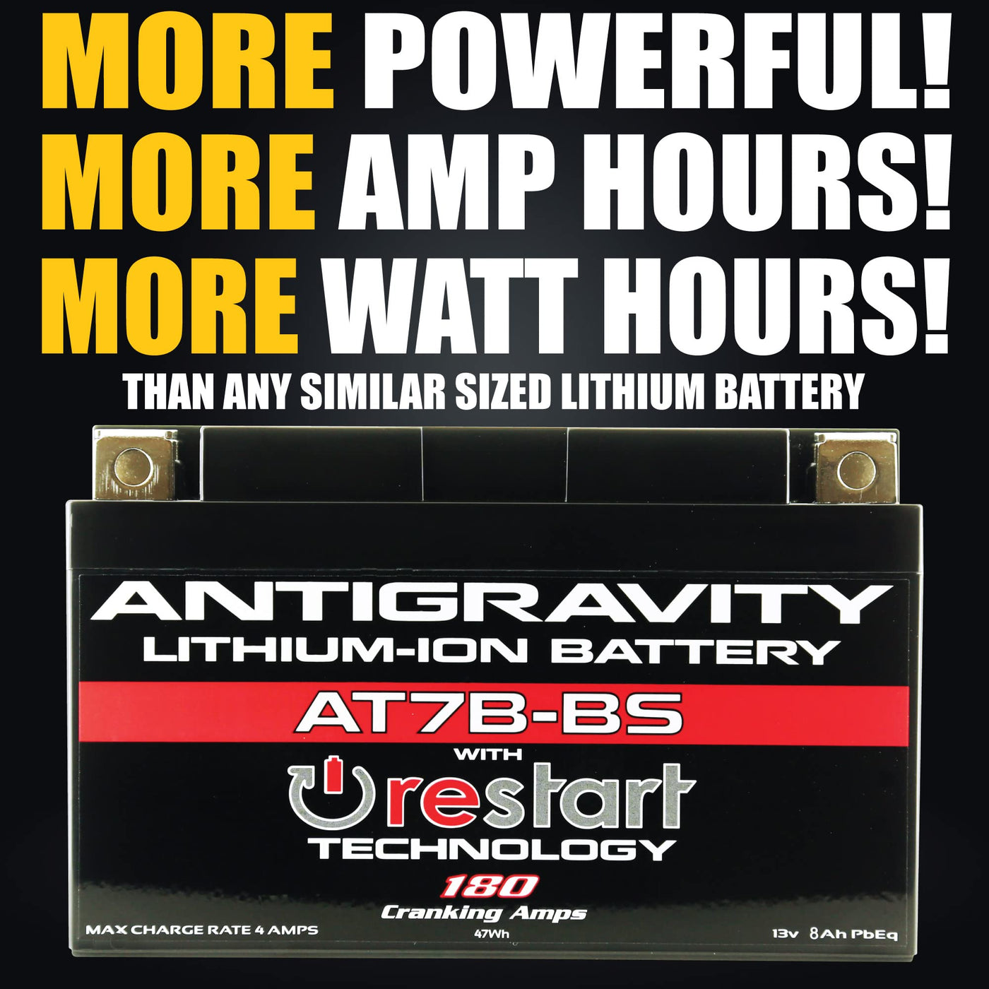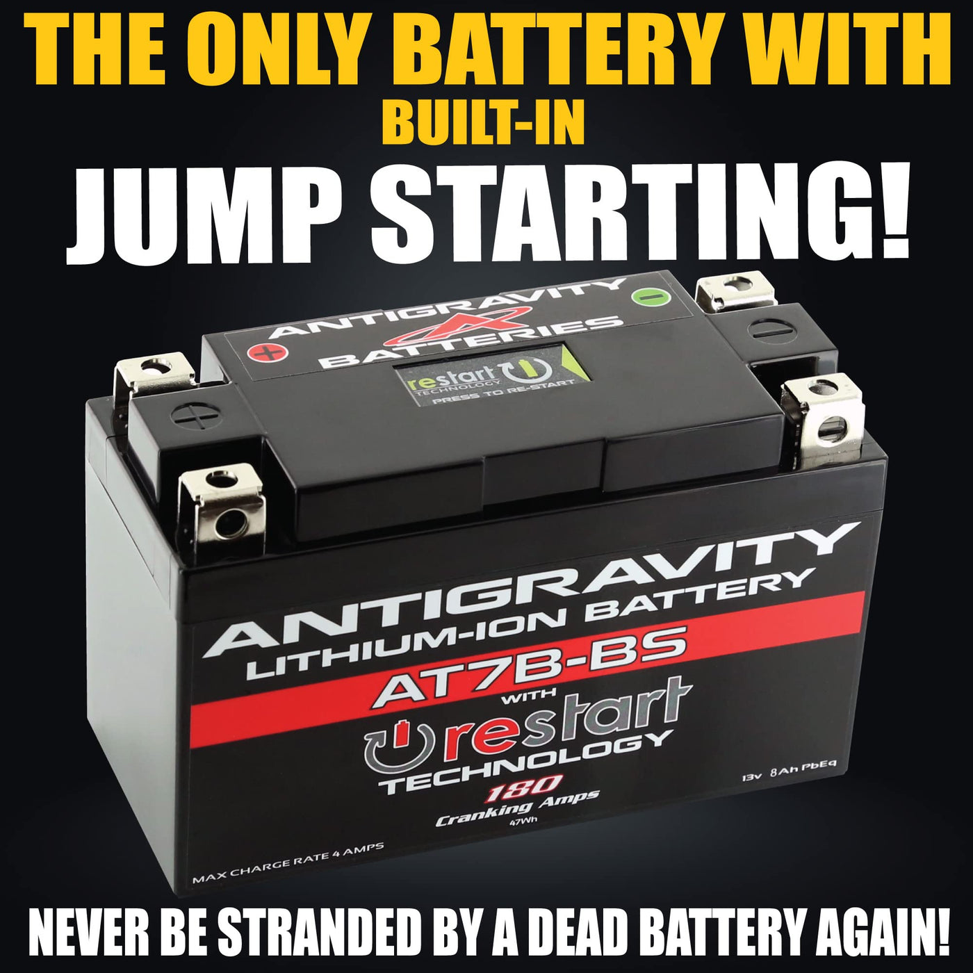 The New Antigravity At7B-Bs-Rs Is A Hi-Power Lightweight Lithium Battery, Built With Our Groundbreaking Restart Technology (Built-In Jump-Starting) So You Won’T Ever Get Stranded With A Dead Battery Again! Directly Replaces The Oem Yt7B-Bs Lead/Acid Battery Found In The Ducati Panigale, As Well As Some Other Vehicles.