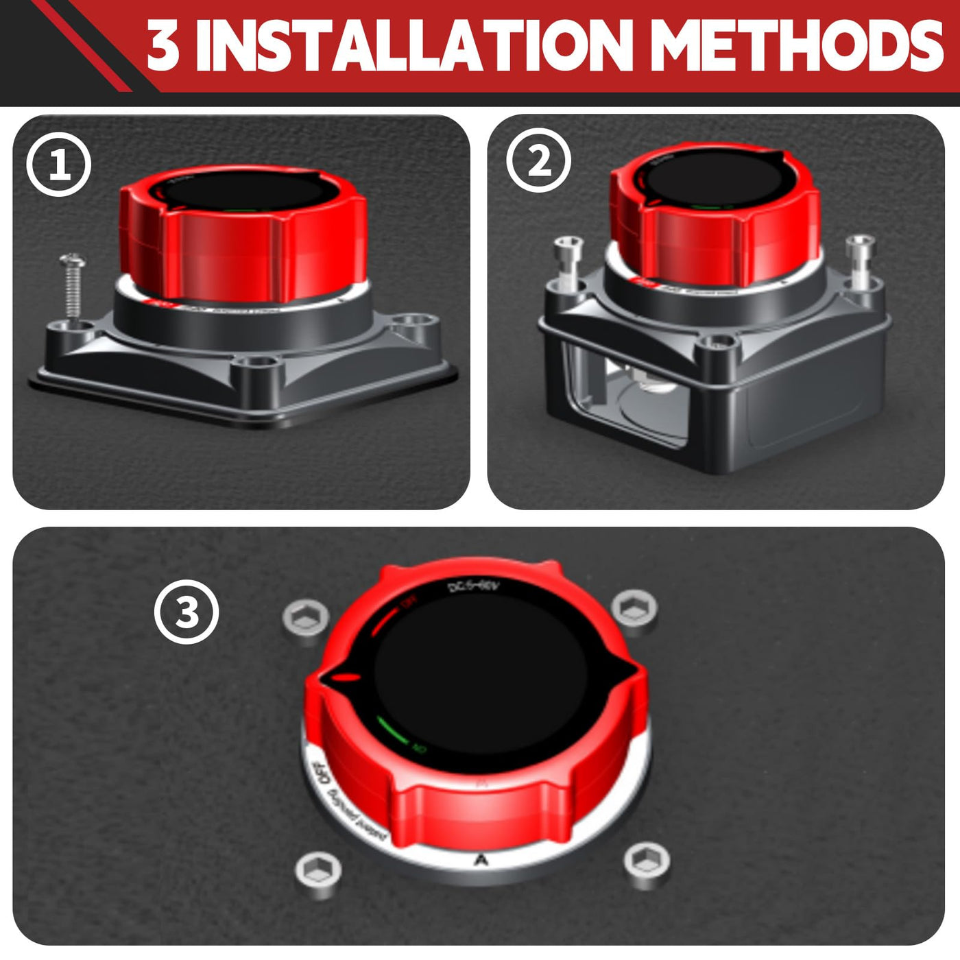 Q: How does the LED digital voltmeter work on this battery switch?A: The LED digital voltmeter on the AWBLIN Battery Disconnect Switch displays the current voltage status in real time when the switch is in the 'On' position, allowing users to easily monitor battery health.