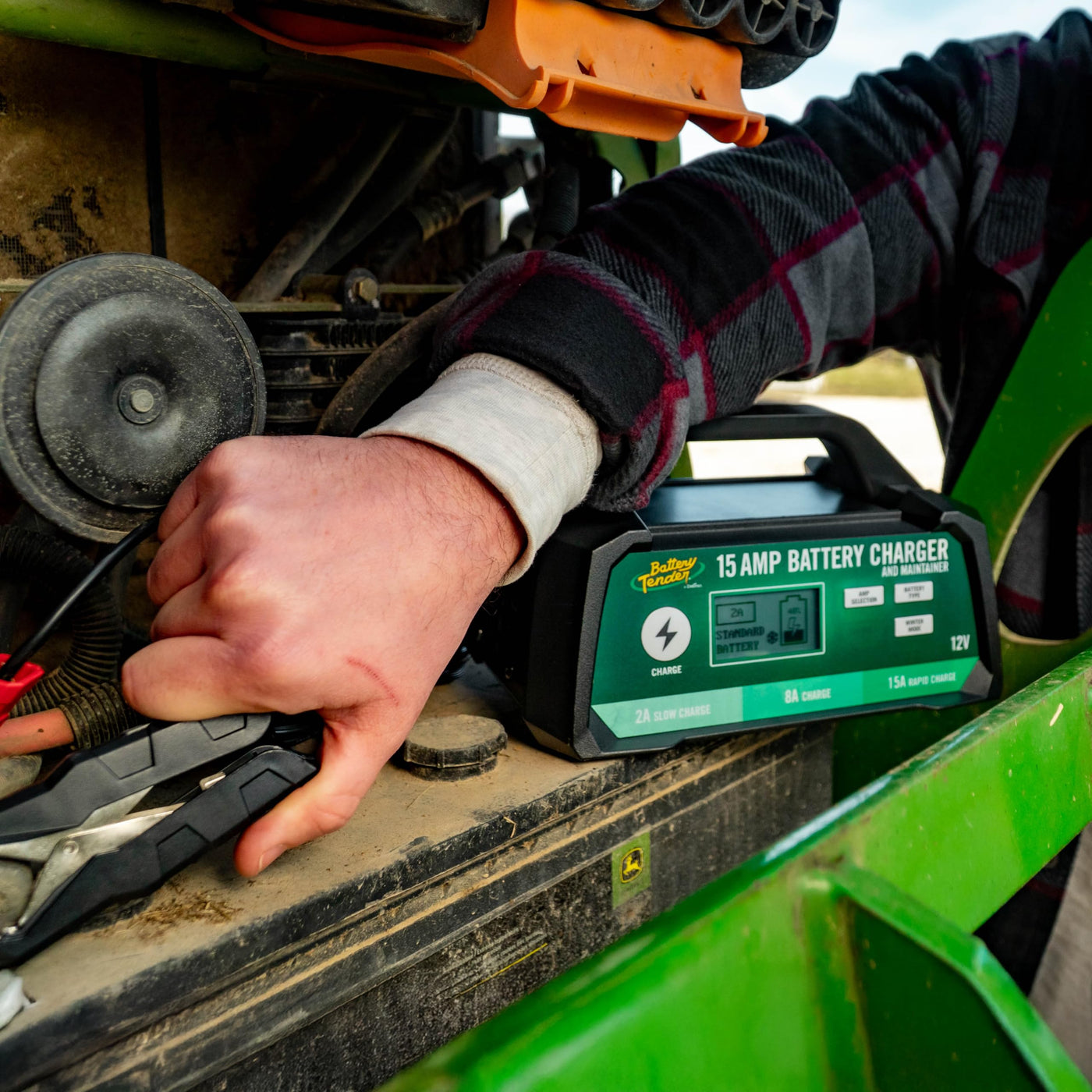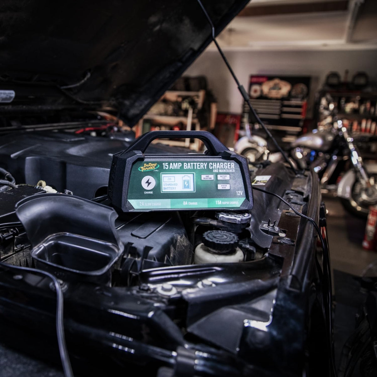 The 12V 2A/8A/15A Amp Battery Tender selectable smart battery charger is powerful and versatile! Great for automotive, marine, industrial, and heavy-duty applications. Equipped with an LCD display for easy to read charging status, charging current, voltage, battery type (chemistry), and error messages. The charge rate selection button makes it easy to change from 2amps, 8amps, and 15 amps. All Battery Tender smart battery chargers automatically fully charge and maintain your battery safely for months at a time. It is as easy as connecting the hard-wired clamps to your 12V battery, plugging in the AC power cord, and selecting your charging mode of choice. Battery Tender smart battery chargers extend the batterys life 2x or more.