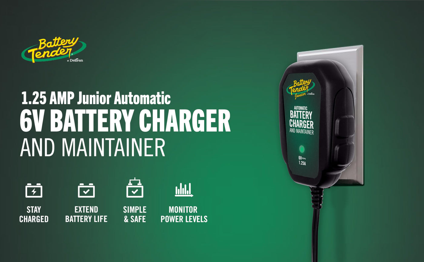 Battery Tender Junior 6V, 1.25 Amp Battery Charger And Maintainer: Fully Automatic 6V Automotive Battery Charger For Cars, Motorcycle, Atvs, And More - 022-0196