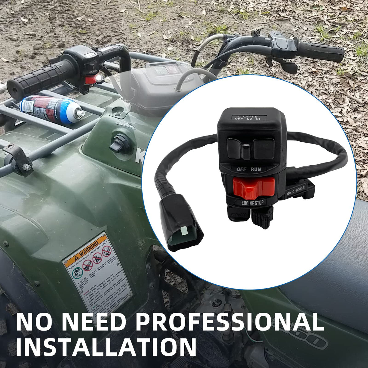 Q: What functions does this switch provide?A: The control switch features multiple functions including engine start, engine stop, headlight high/low/off, and a choke lever. This makes it a versatile component for managing essential operations of your ATV.