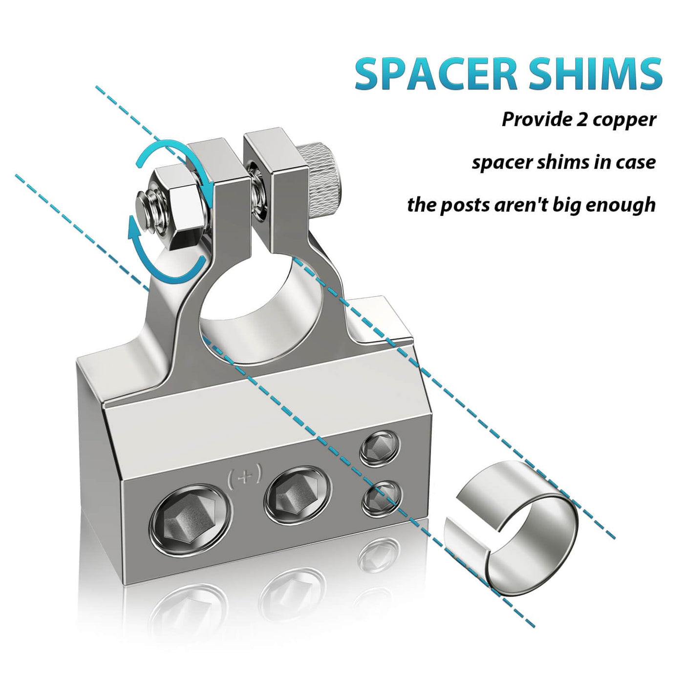 Please Don'T Overtighten ,Br>Corotc Car Battery Terminal, 0/4/8/10 Gauge Awg Positive Negative Battery Terminal Connectors, With 2 Clear Covers & Shims, Auto Car Audio Marine Boat Modification