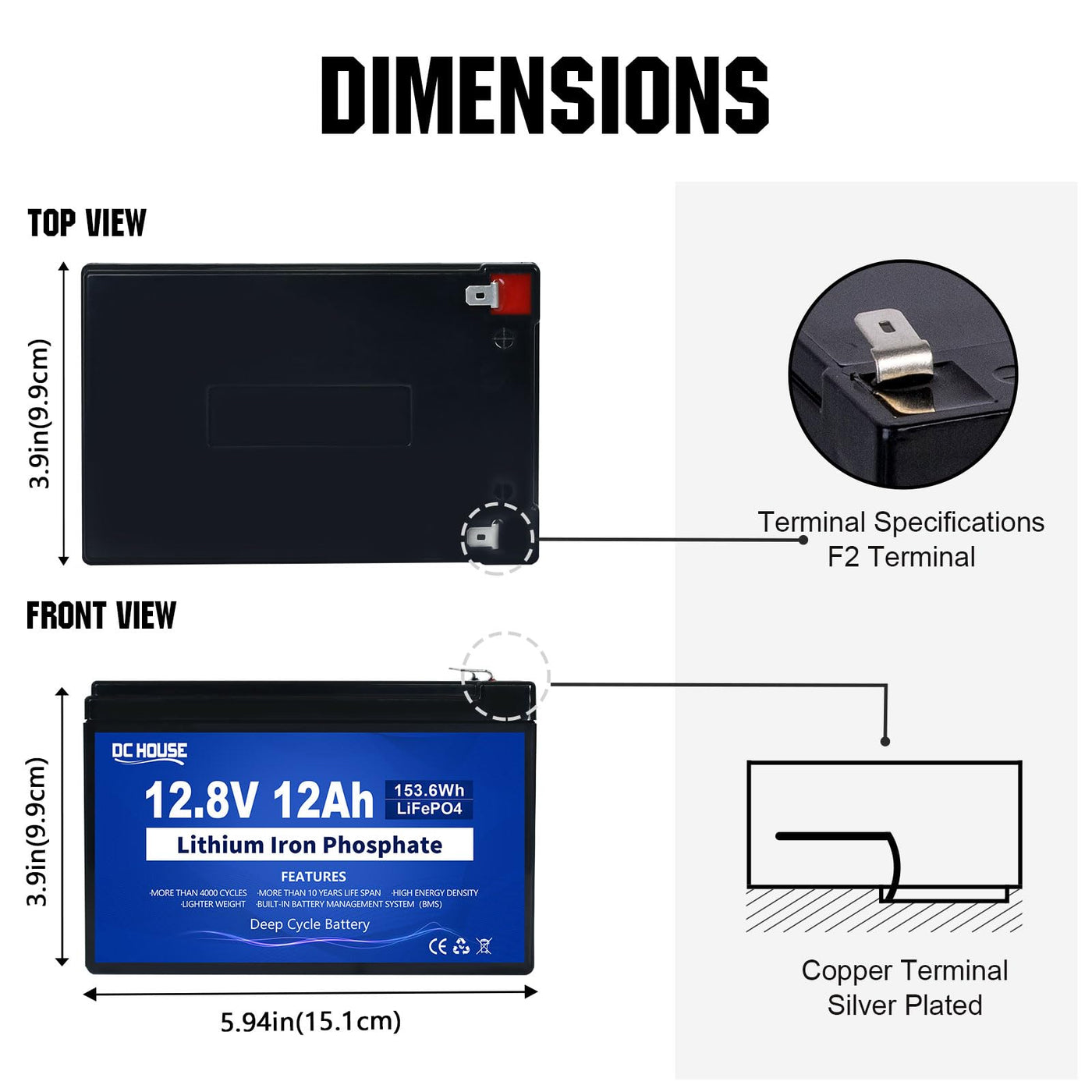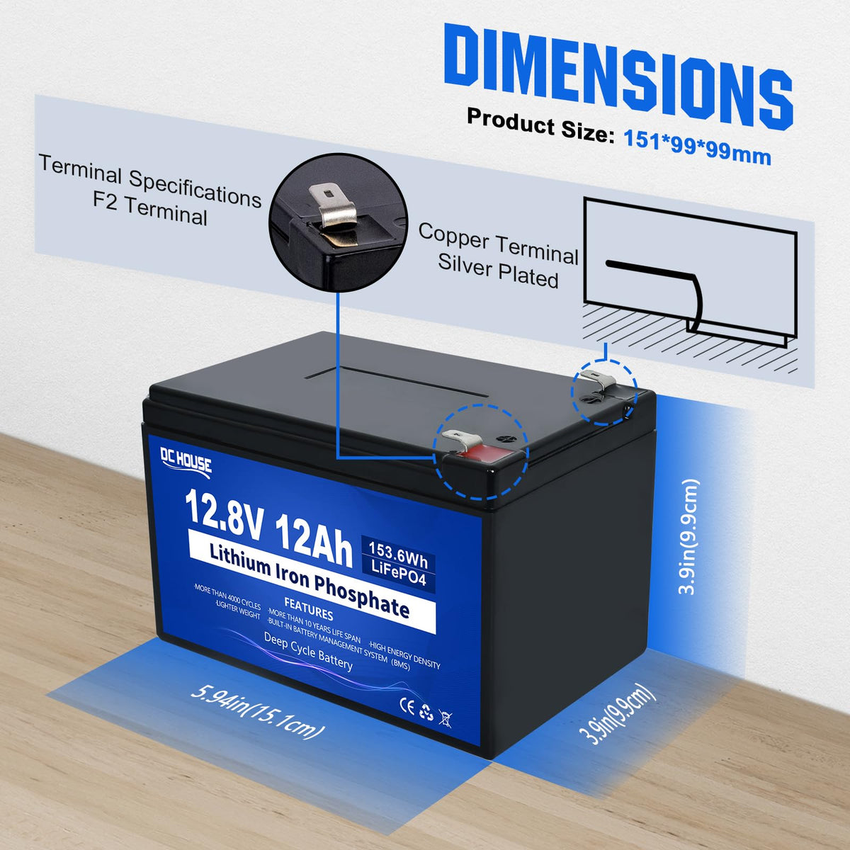 Dc House 12V 12Ah Lifepo4 Lithium Battery With 15A Bms, 10 Year Lifespan, Up To 15000+ Cycles, Lightweight And Portable For Rv,