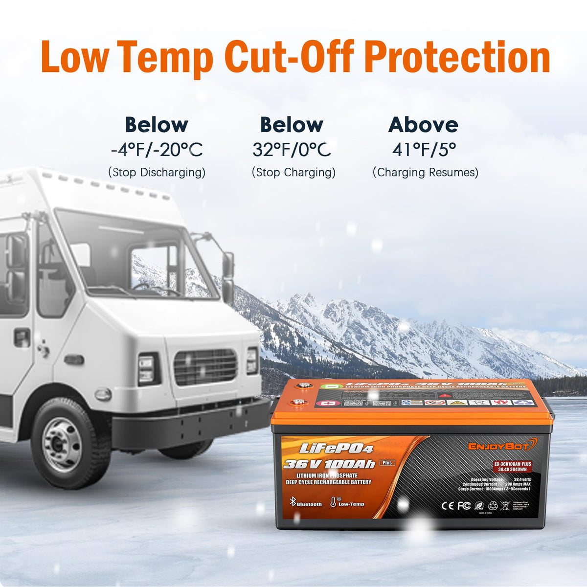 Enjoybot 36V 100Ah Plus Lifepo4 Lithium Battery With 43.8V 20A Charger, Built-In 200A Bms And Bluetooth, Support 2 Series Connec