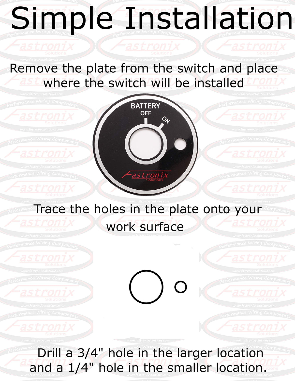 Q: What materials are used in the construction of this battery switch?A: The Fastronix 300A Battery Disconnect Switch is made with durable copper main studs, which are rated for high current applications, ensuring robust performance.