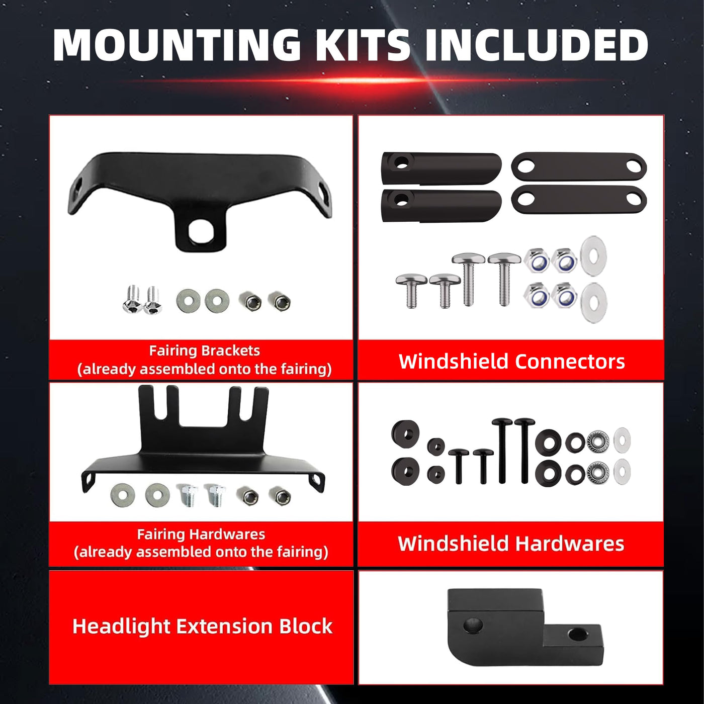 Q: How do I install the FATECIM Headlight Fairing?A: The FATECIM Headlight Fairing comes with all necessary mounting hardware for easy installation. However, it is recommended that the installation be done by a professional motorcycle shop, especially for models that require headlight bucket relocation or have a cast triple-tree riser setup.