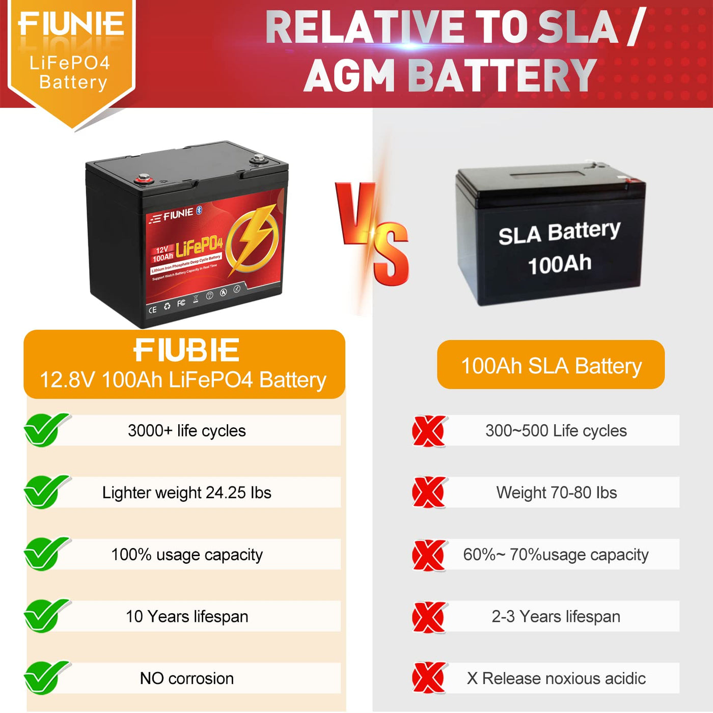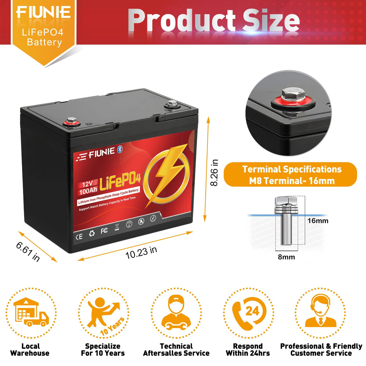 Fiunie Lithium Battery 12V 100Ah,Max 1280W Energy Lifepo4 Mini With Bluetooth Lithium 3000-7000 Deep Cycle Battery,12V Lithium B